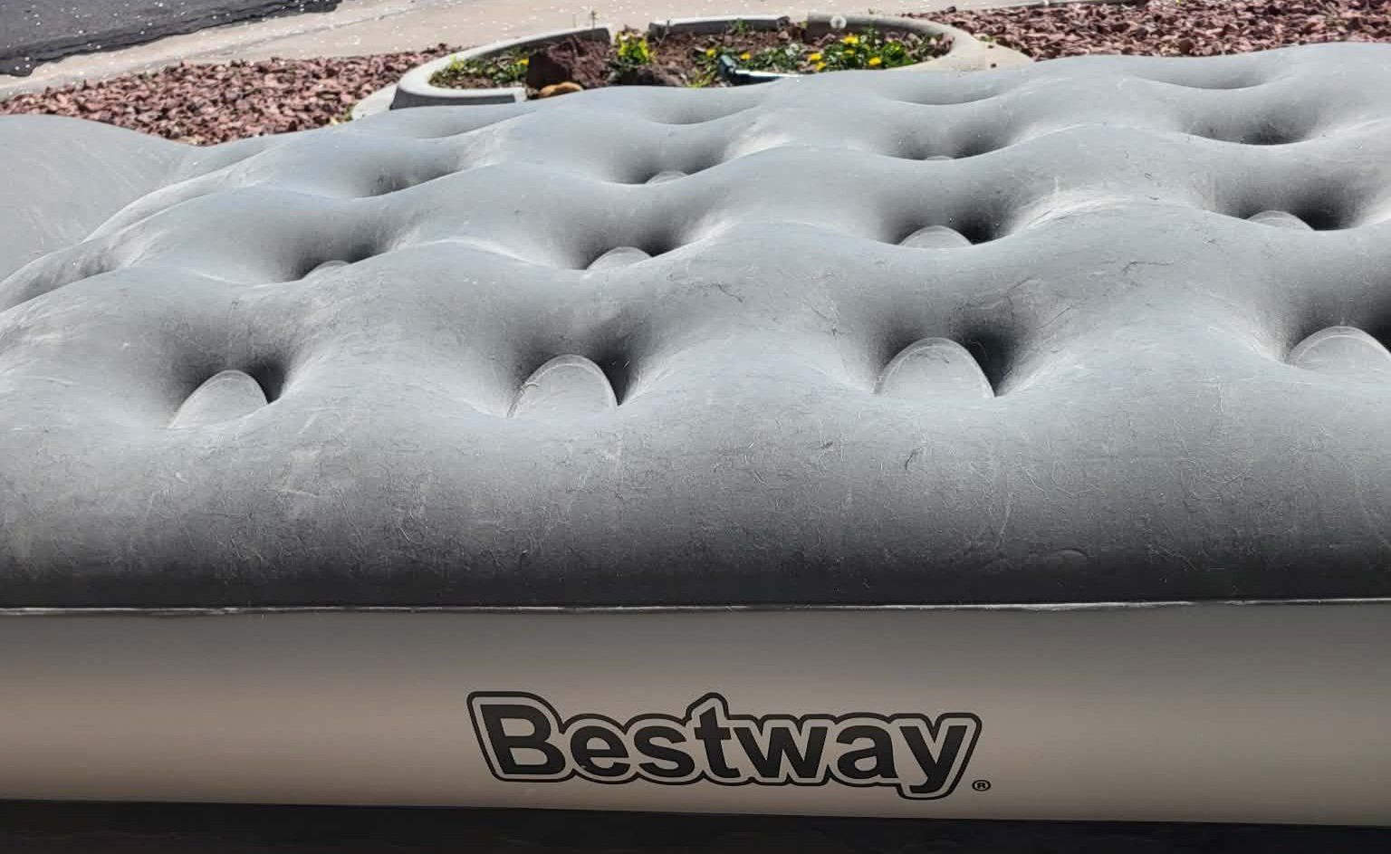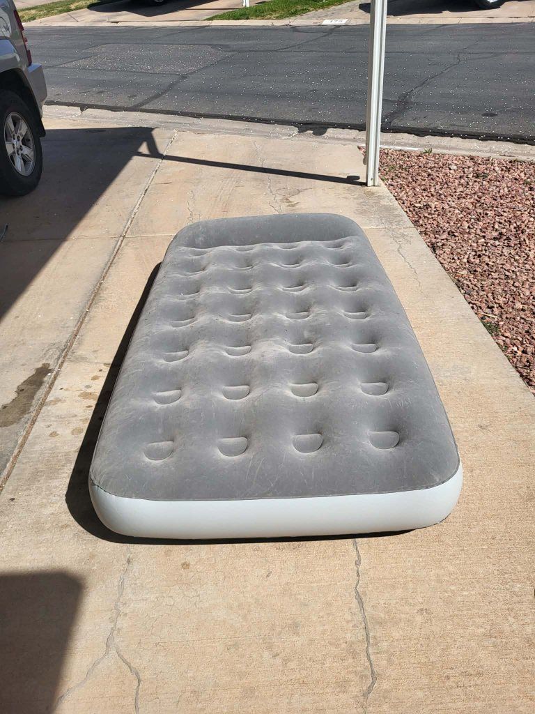 Twin inflatable bed, by BESTWAY. Excellent condition, pump is built in and included. Just plug cord in and inflate or deflate. 75" long x 40" WIDE x10" high.$25, cash. located in Washington Utah
