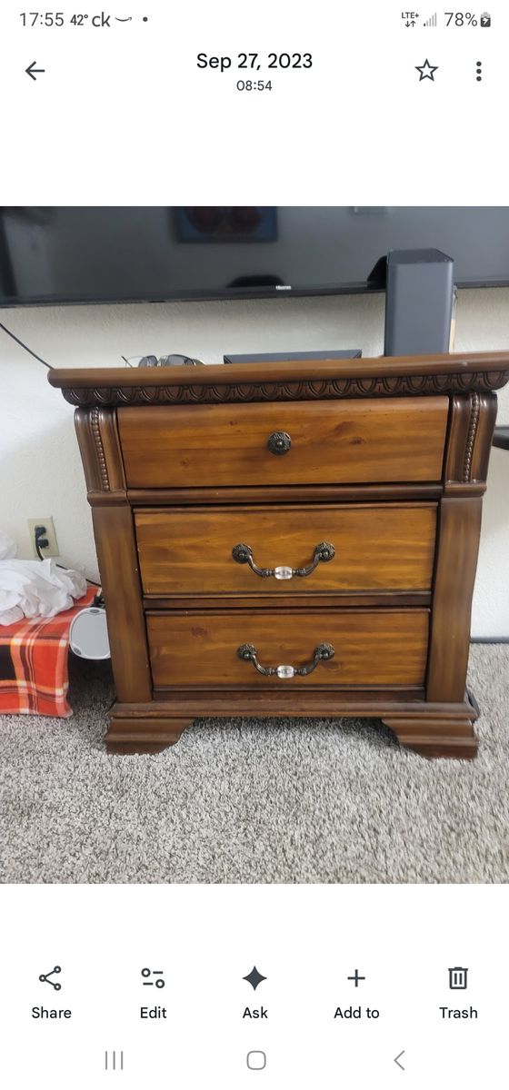 Real wooden furniture, dresser/mirror with the night stand, both in excellent condition. Bought in less then a year ago