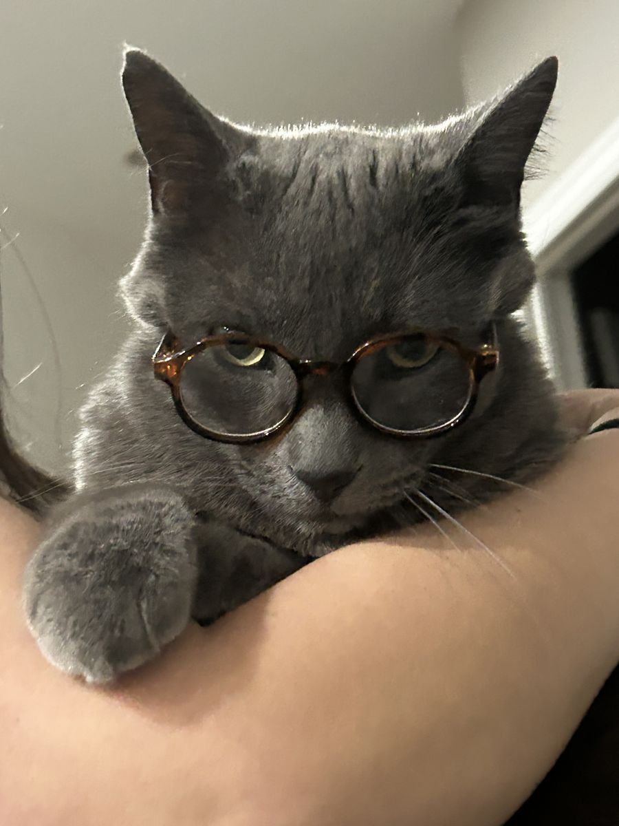The first cat is a Blue Russian named Blue. He enjoys cuddling and is friendly to everyone and friendly with other animals. He enjoys being outside, but is mostly an indoor cat. Blue has to be fed a special prescription food due to a history of kidney stones. The first bag of cat food will be free.
