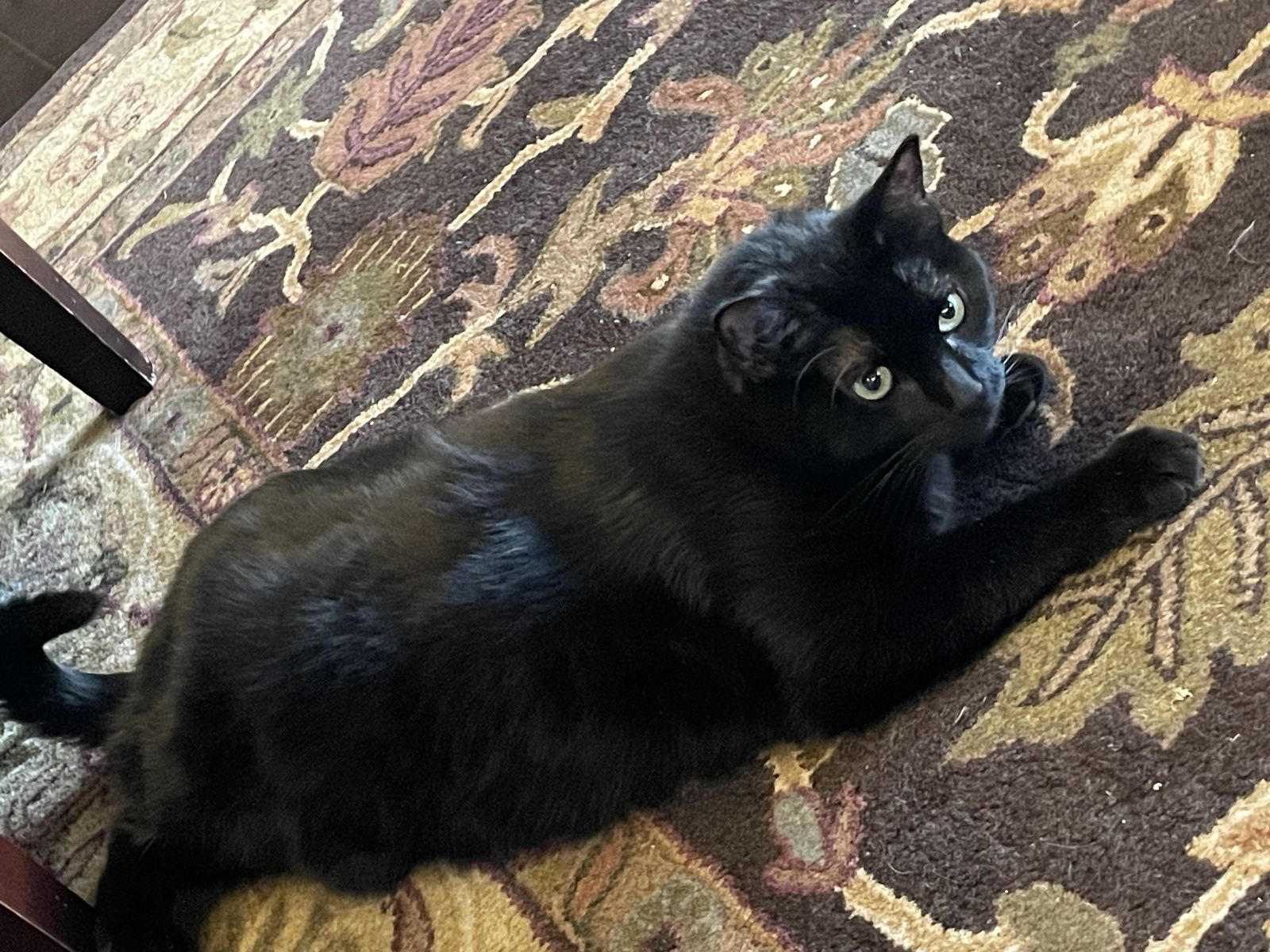 The second cat's name is Mufasa. She is a shy sweetheart, but once she opens up, she’ll roll around and demand you give her love. She is both an indoor/outdoor cat. She is friendly with other animals and wants to be friends with them. She doesn’t have any dietary restrictions.