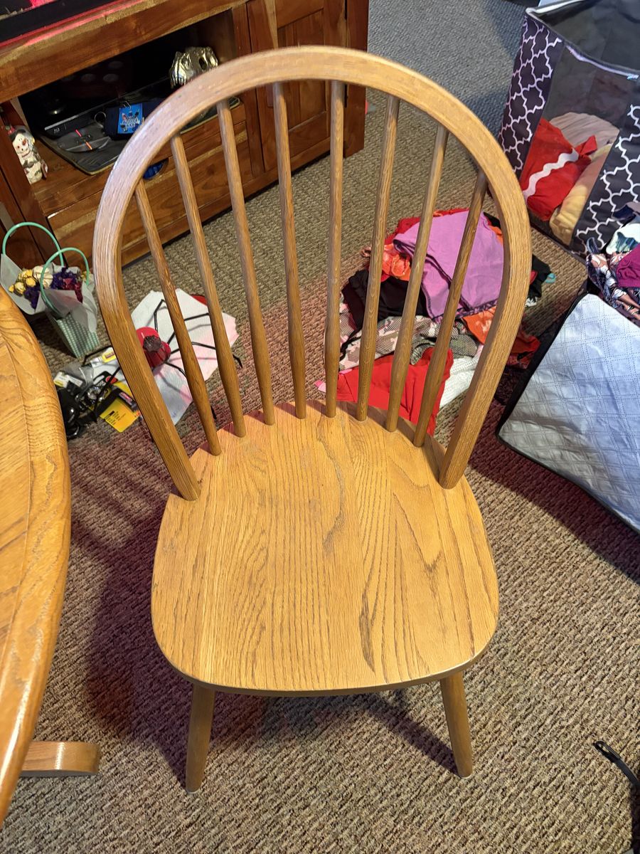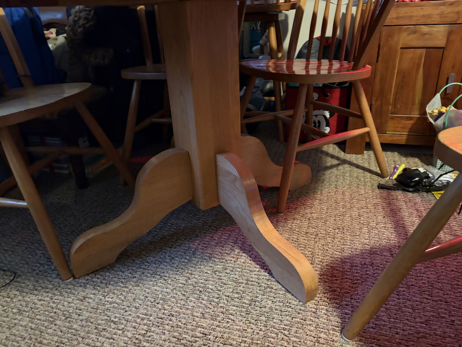PayPalCircular kitchen table and 4 chairs. Normal wear and tear. One leaf to make into oval. Solid wood 125 OBO due to needing to move