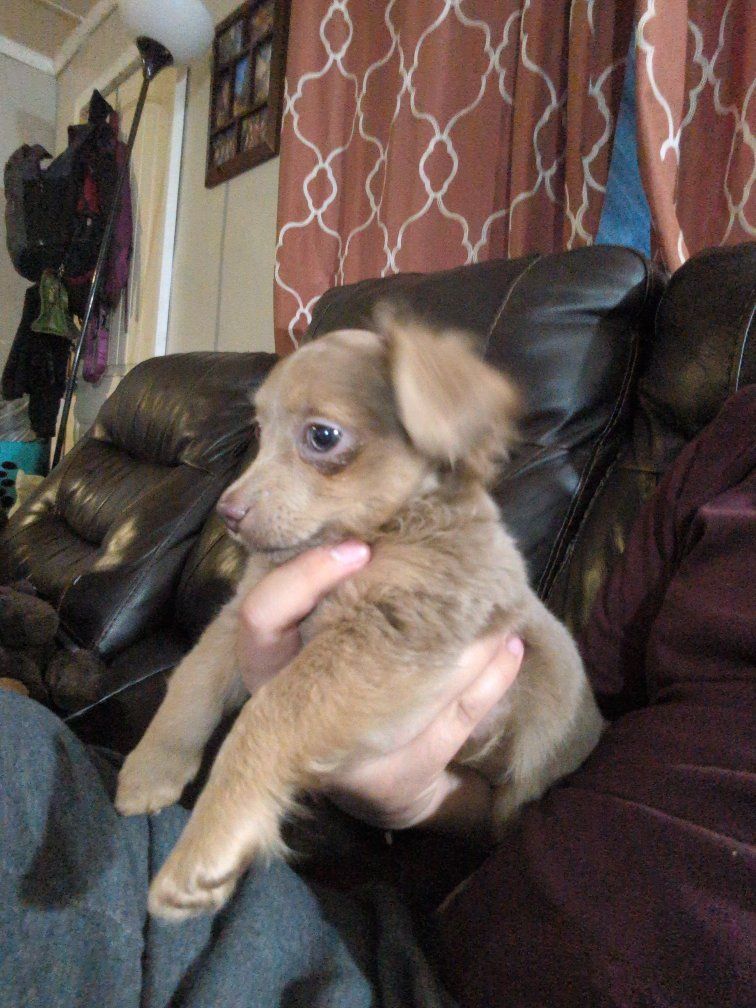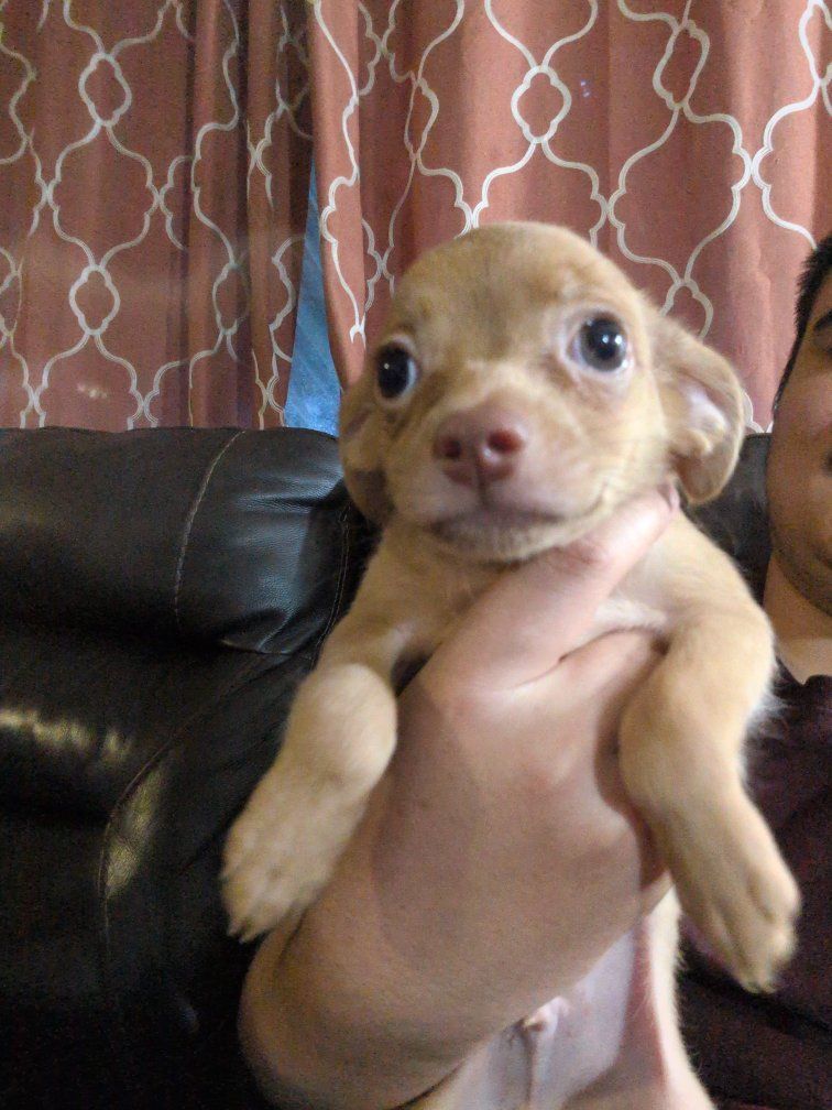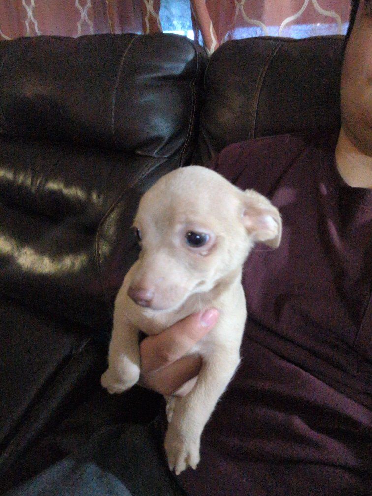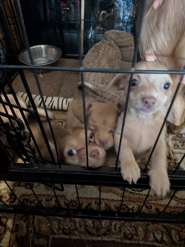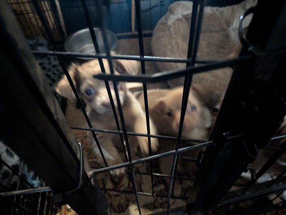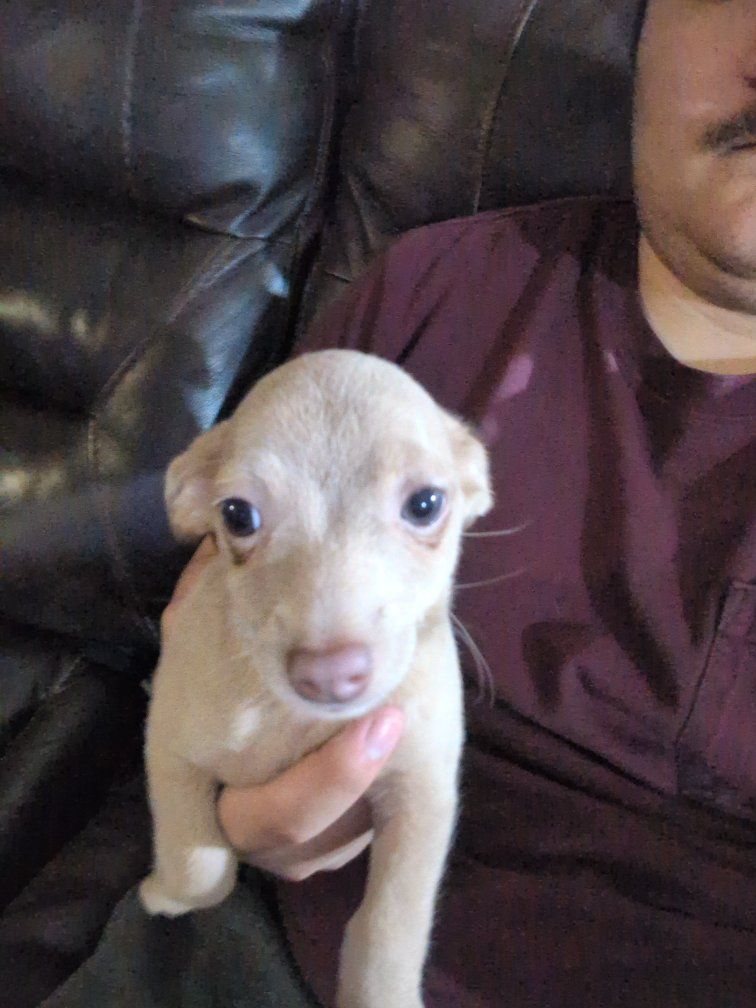 he were born January 10th. there is three boys, one girl. super playful, cute puppies ready for their new home. message me for any question they all have their shots.