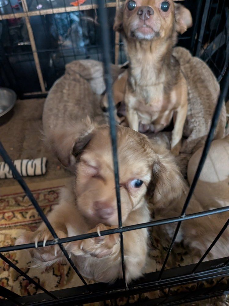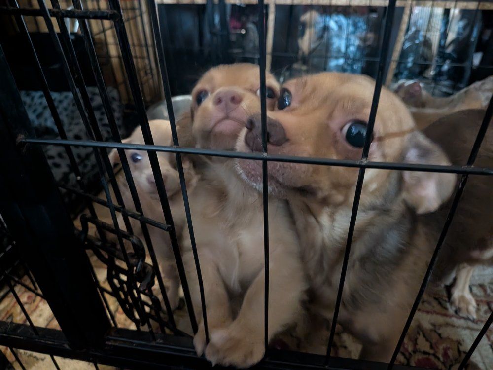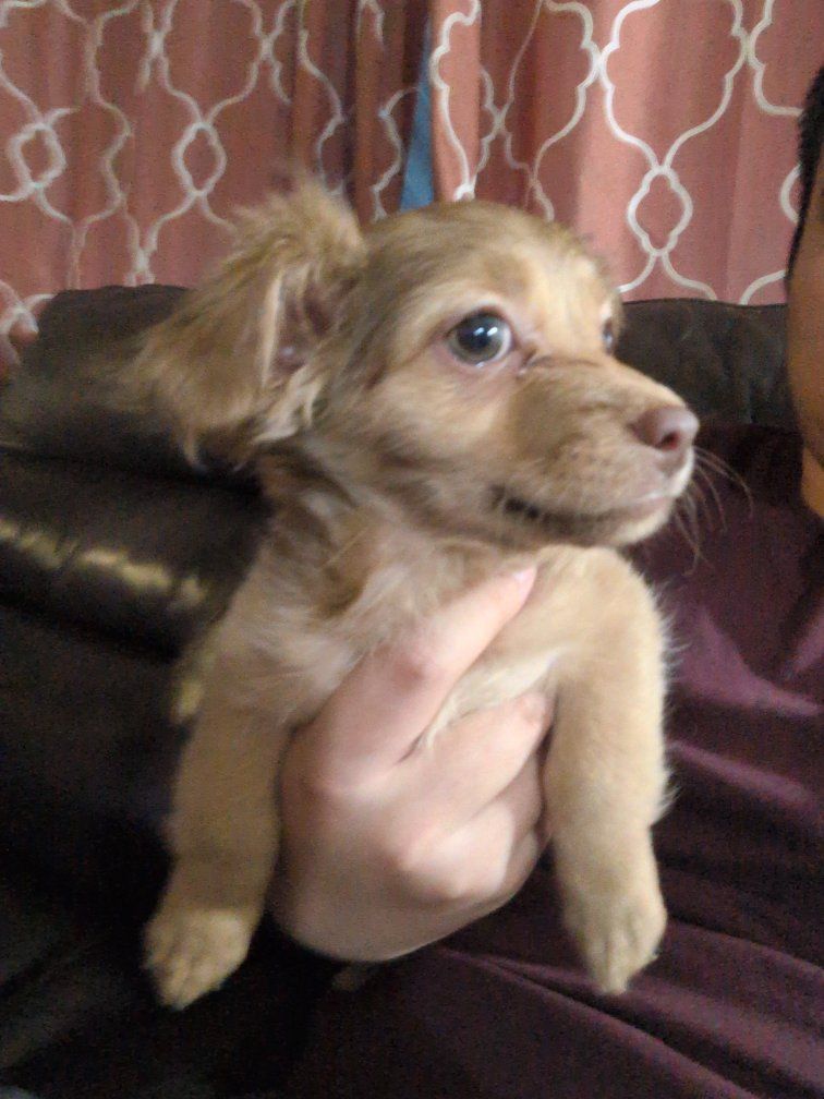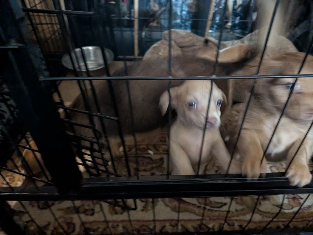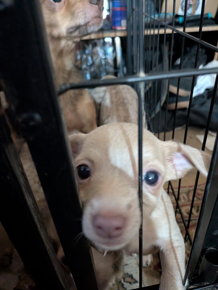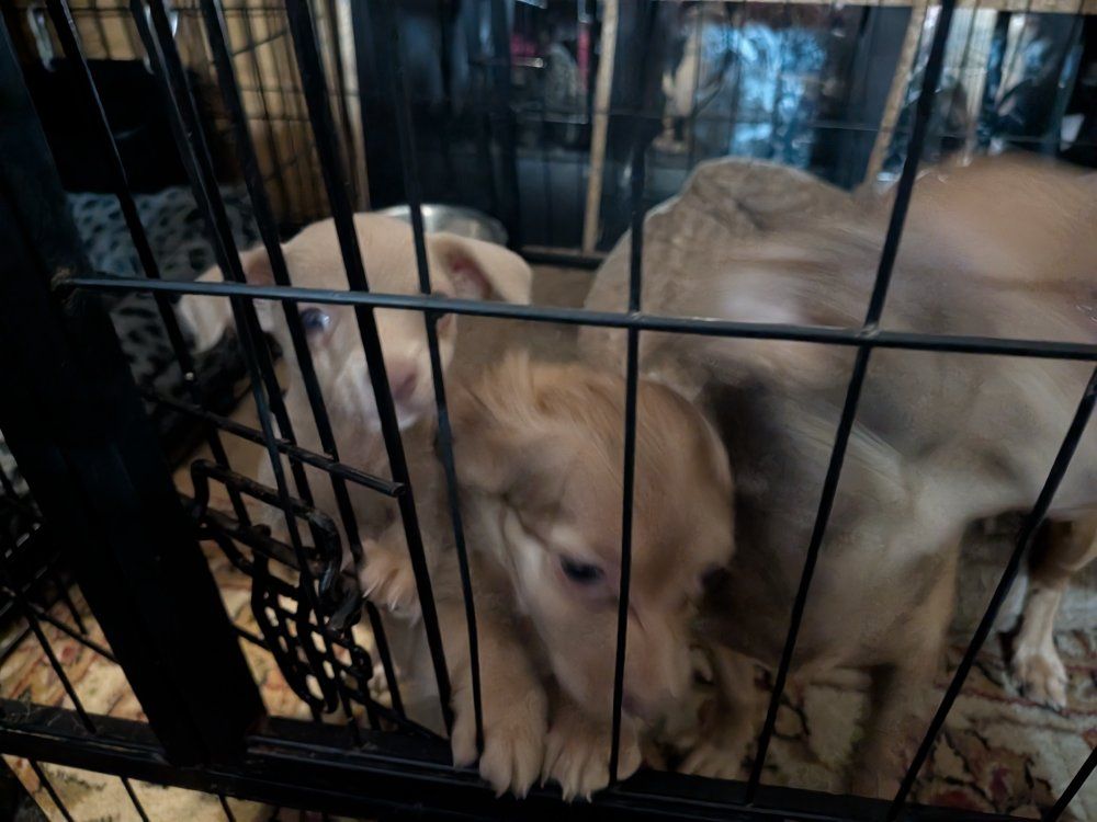 he were born January 10th. there is three boys, one girl. super playful, cute puppies ready for their new home. message me for any question they all have their shots.
