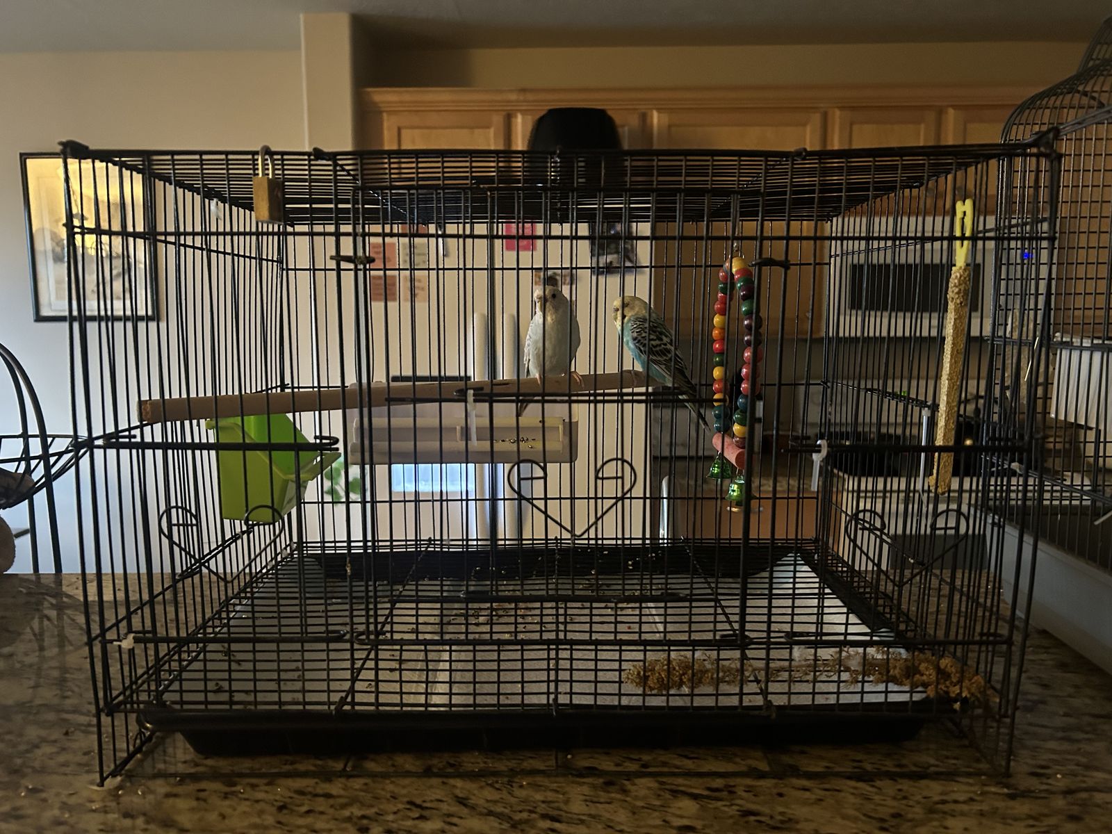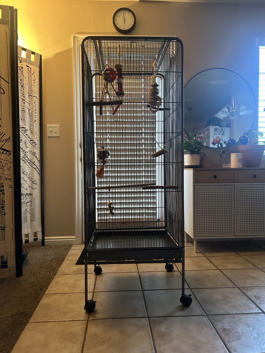 ApplePayNEED GONE ASAP! Two female parakeets, with large cage, travel cage, accessories and food! Ages two and five. Message me for more details! $150 for everything (OBO) :)