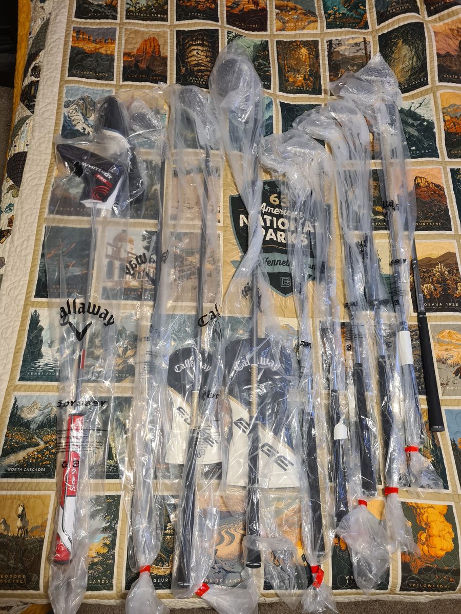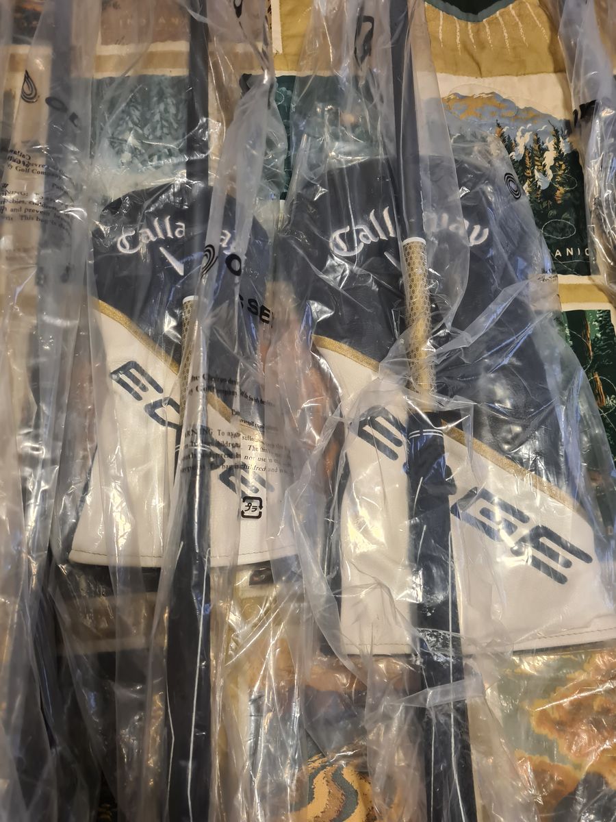Never played. New in plastic. Only issue is the 3 wood and driver are from a previous years models and have tan colored accents and head cover versus a blueish cover that the other clubs will have.