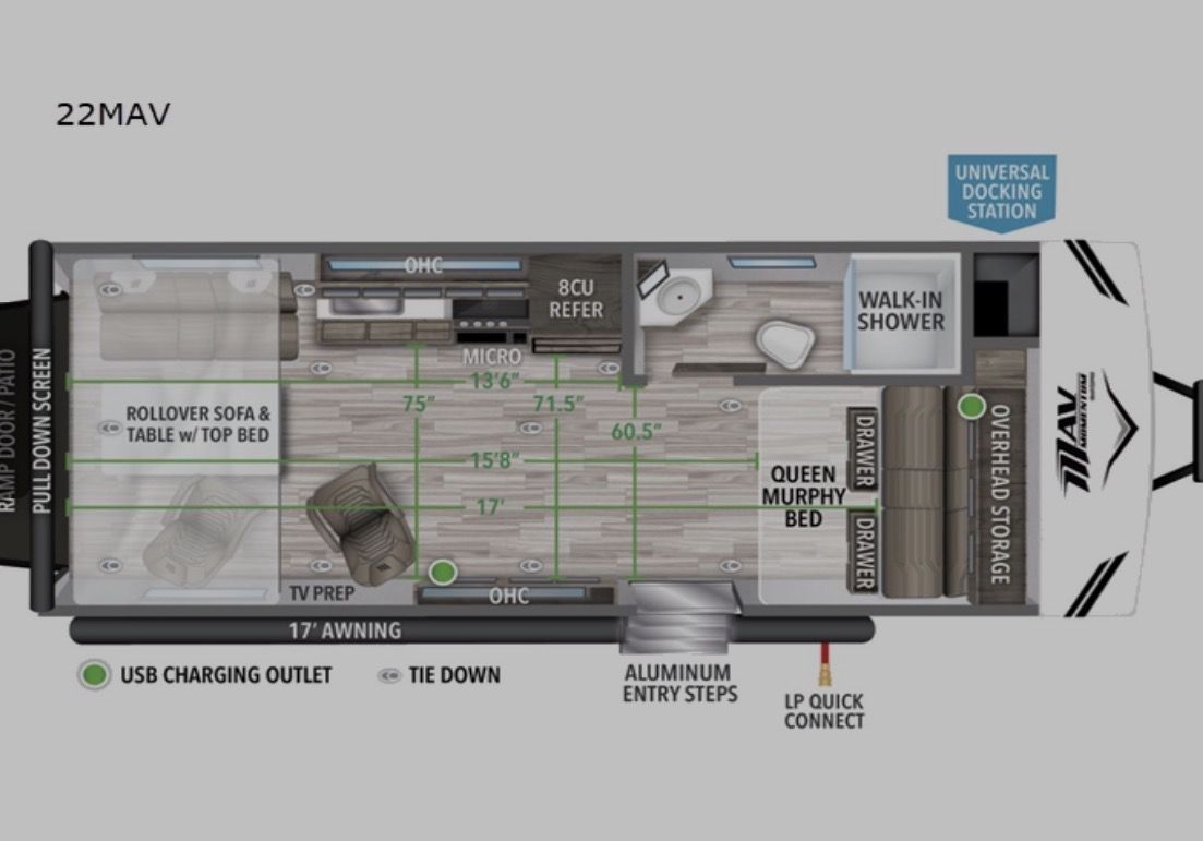 We bought this trailer new last season and used it 3 times. Everything works like new. This trailer is known for its thick aluminum siding. We loved all the room it gave us inside and on the party deck with the fence. We were able to fit our 4 seater side by side and our 4 wheeler in it at the same time. Has a big bunk. Two removable reclining chairs, Couch (bed), Couch (Murphy bed).
