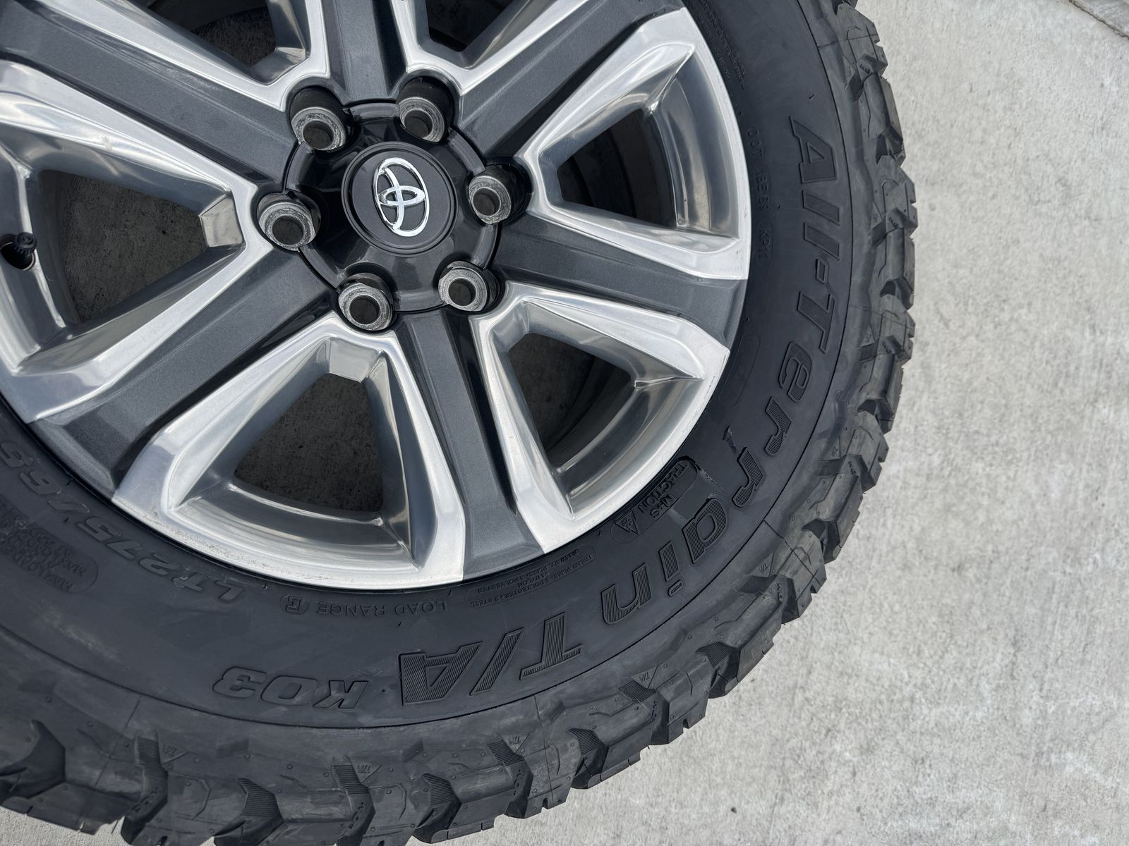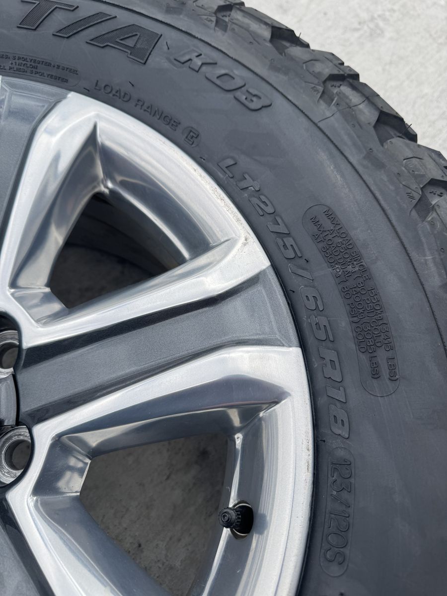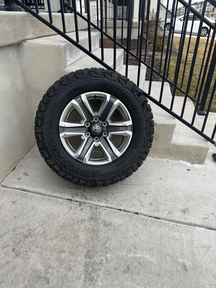 VenmoSet of 4-Toyota Tacoma 4Runner Rims and Tires 275/65R18 Bfgoodrich ko3 Load E Like new in excellent condition asking $1750 obo Tires have only 50 miles Rims are in great condition I can sell the rims or tires separately Bolt pattern 6-5.5 or 6-139.7 Rims came off of 2020 Toyota Tacoma They will fit Tacoma 4runner fj cruiser tundra sequoia Text anytime 385-402-2292