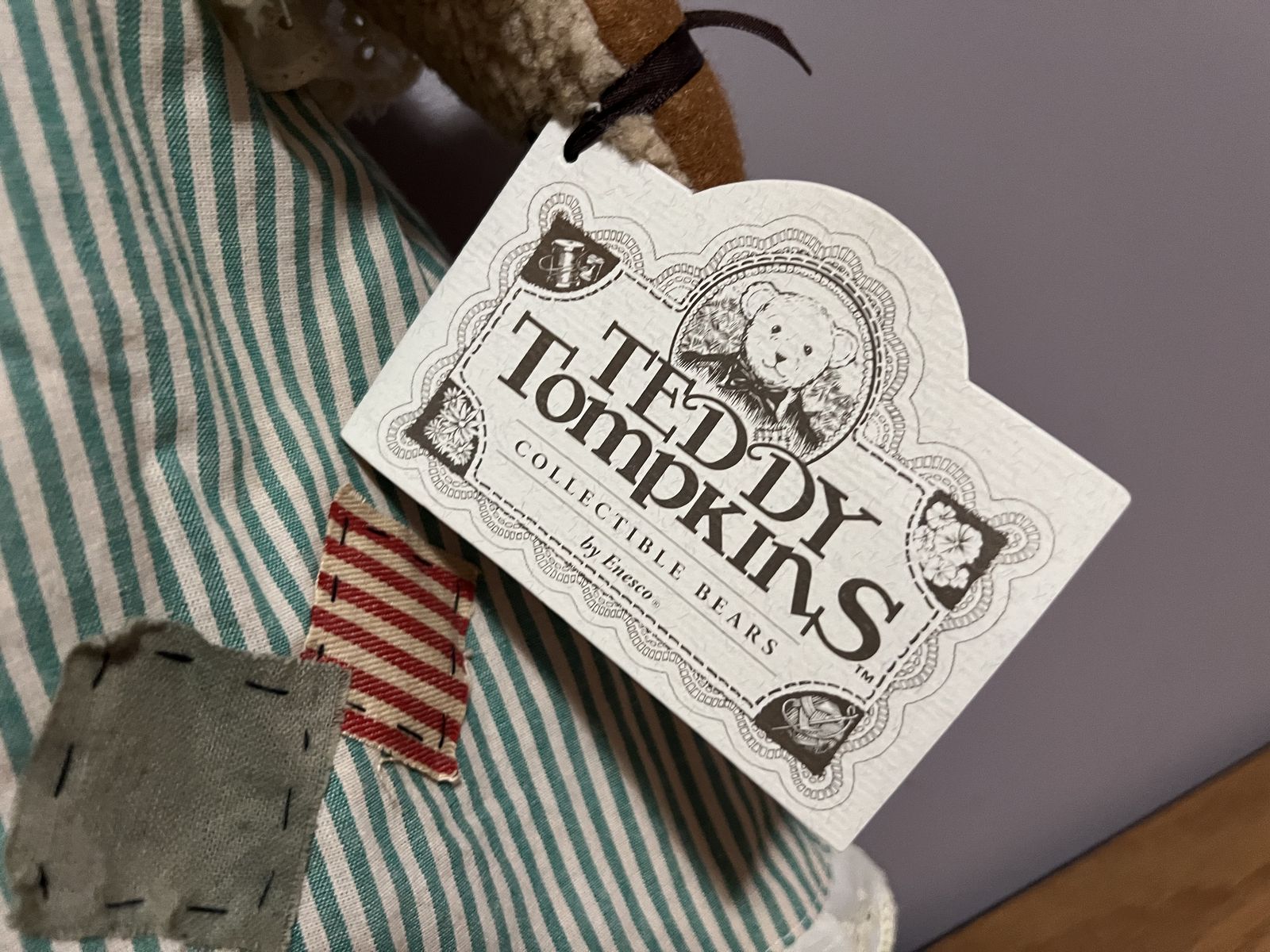 Keywords: Teddy Tompkins, Enesco collectible bear, vintage teddy bear, storybook bear.