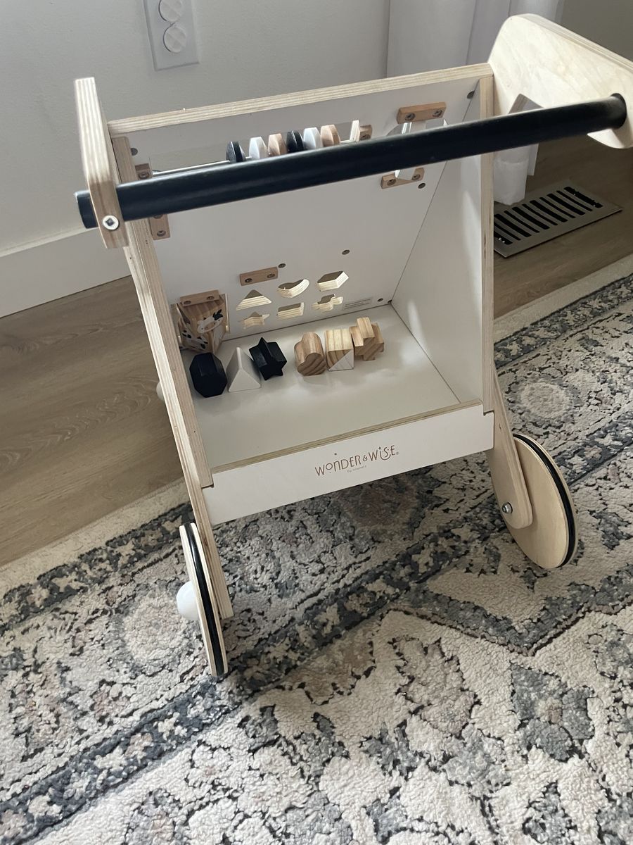 PayPalWooden Montessori-style baby walker and activity center.