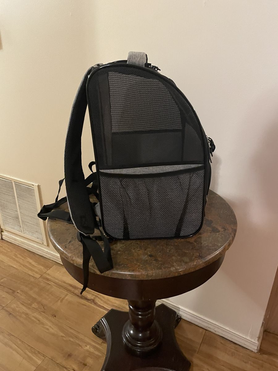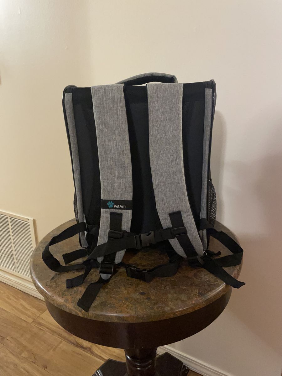 PetAmi pet carrier backpack in gray, gently used and in great condition.
