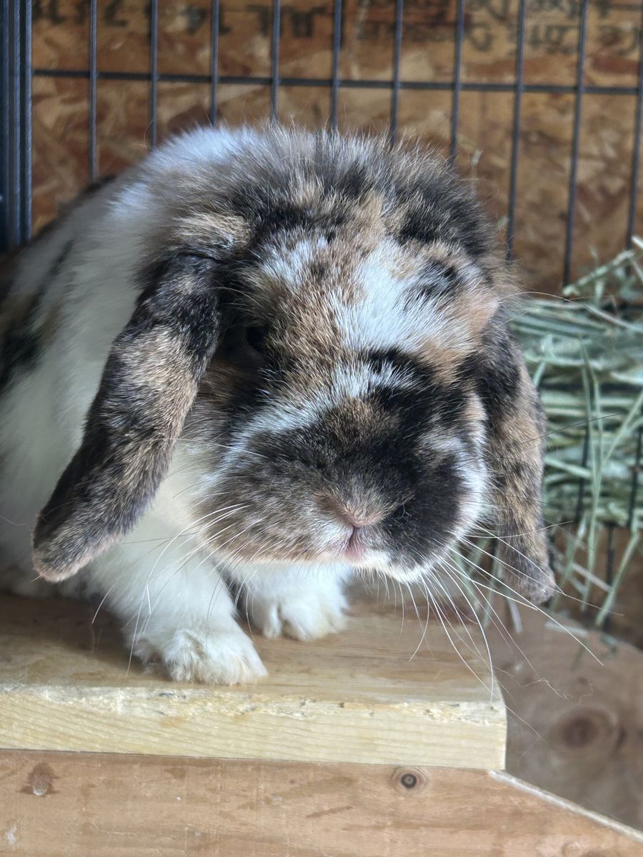 Ready to go 8 weeks old Asking $155 Can come with his pedigree if desired! Parents are at the end Out of Holland lop hills “lady” Tri and Atriella’s “martini” VM harlequin See Less