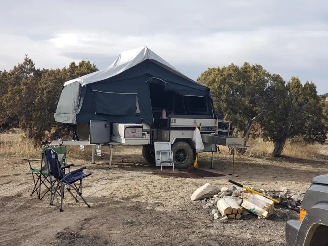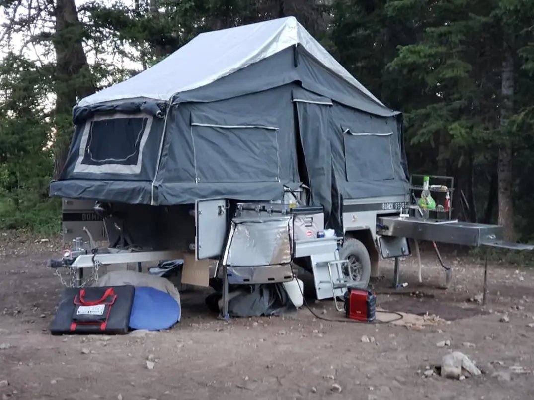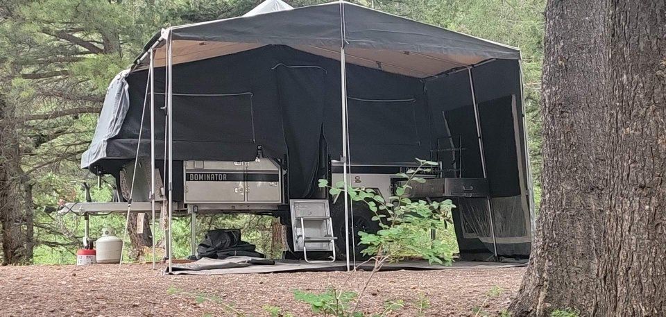 ZelleGreat condition - low center of gravity - follows anywhere your vehicle can go - SnoMaster fridge - annex and all canvas included and in great shape - barely used the last couple of years- needs battery charger - upgraded jockey wheel