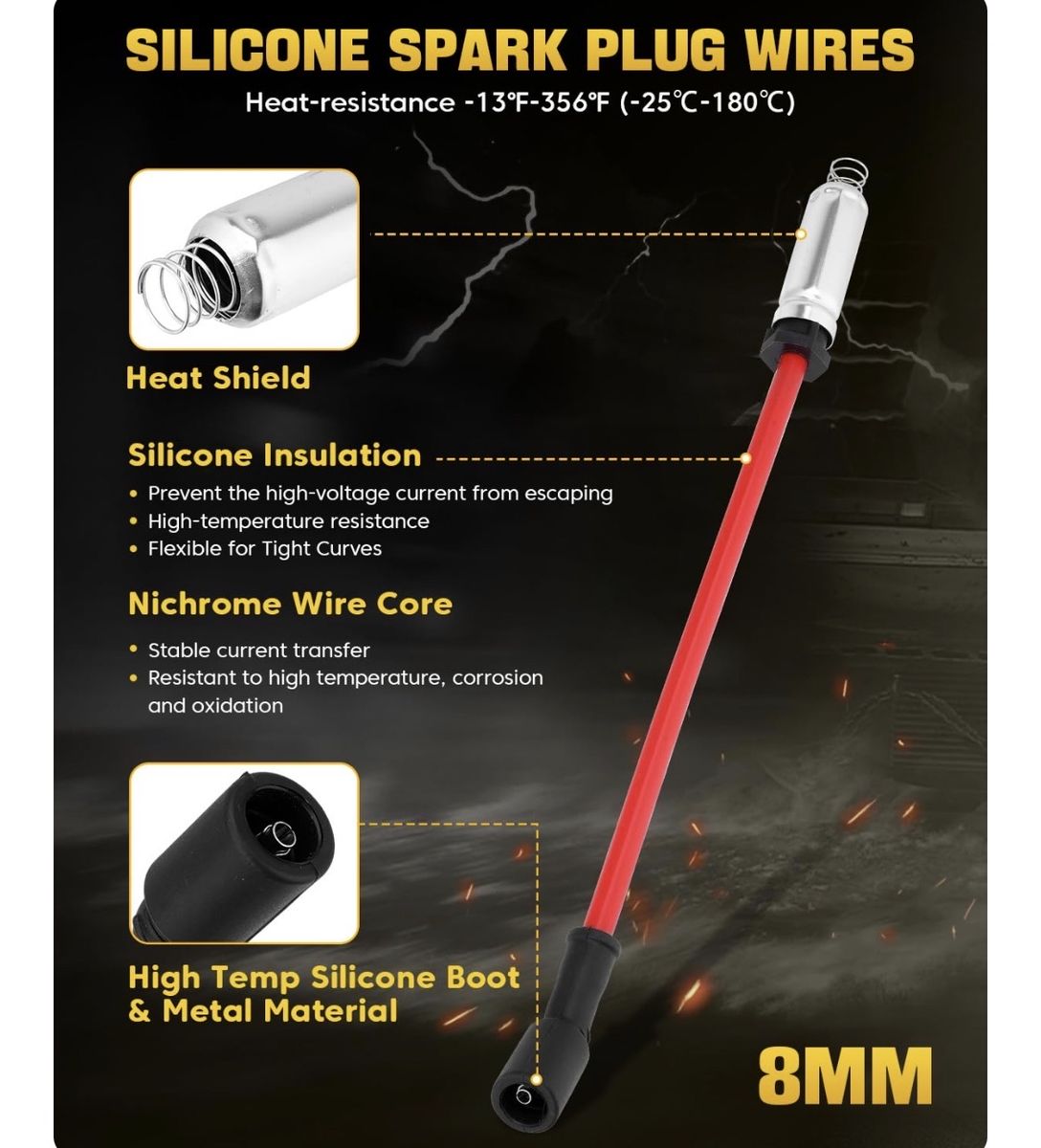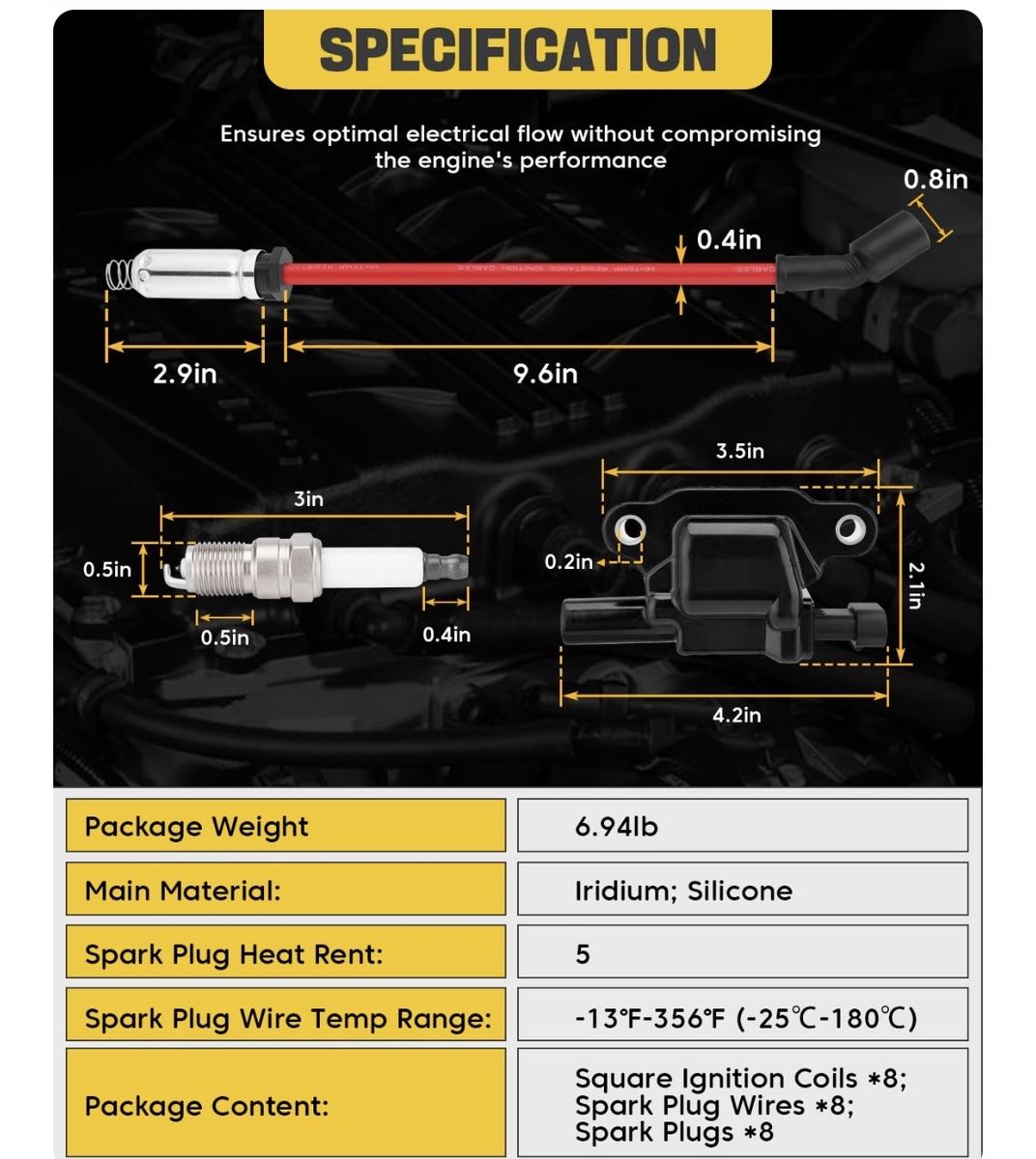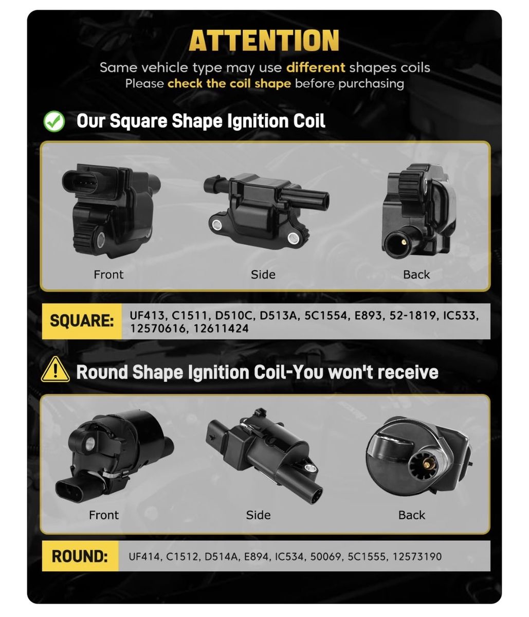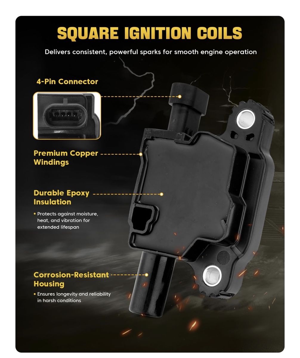 Venmo8Pcs UF413 Square Ignition Coils with 9748UU 8mm Spark Plug Wires Set & 41- 962 Iridium Spark Plugs Compatible with Chevy Silverado Suburban Tahoe, GMC Sierra Yukon, Cadillac, Buick 4.8L 5.3L 6.OL 6.2L Brand New