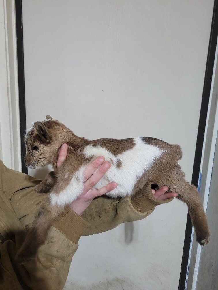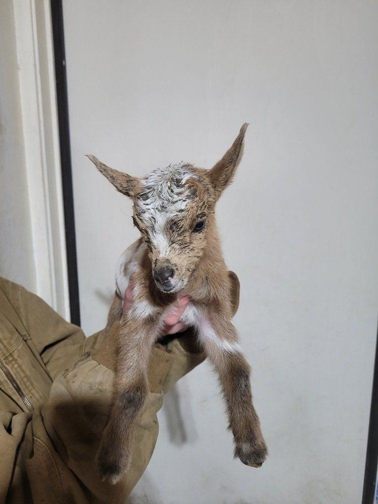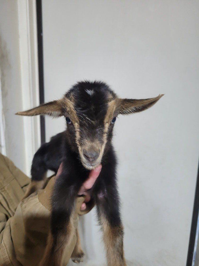 Dad is 1/2 Nigerian Dwarf 1/2 Standard LaMancha. Dad is Tri colored