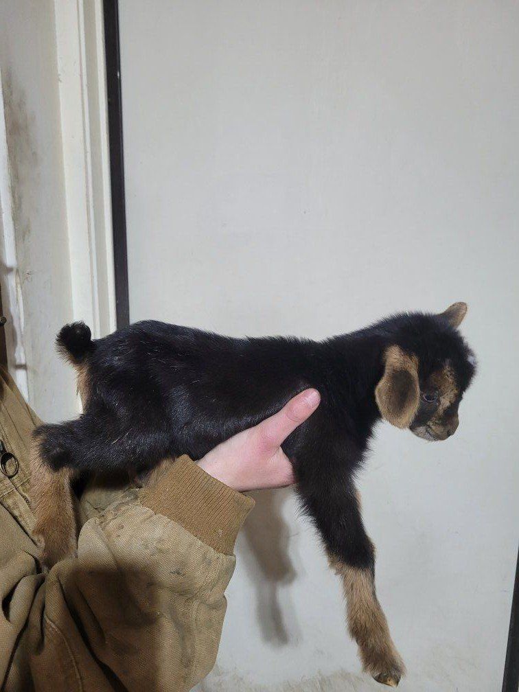 Mom is a blue eyed Nigerian Dwarf . Has a nice bag and comes from a good line of milkers.
