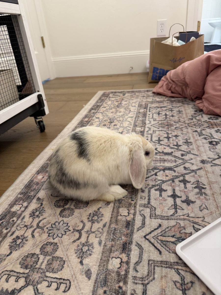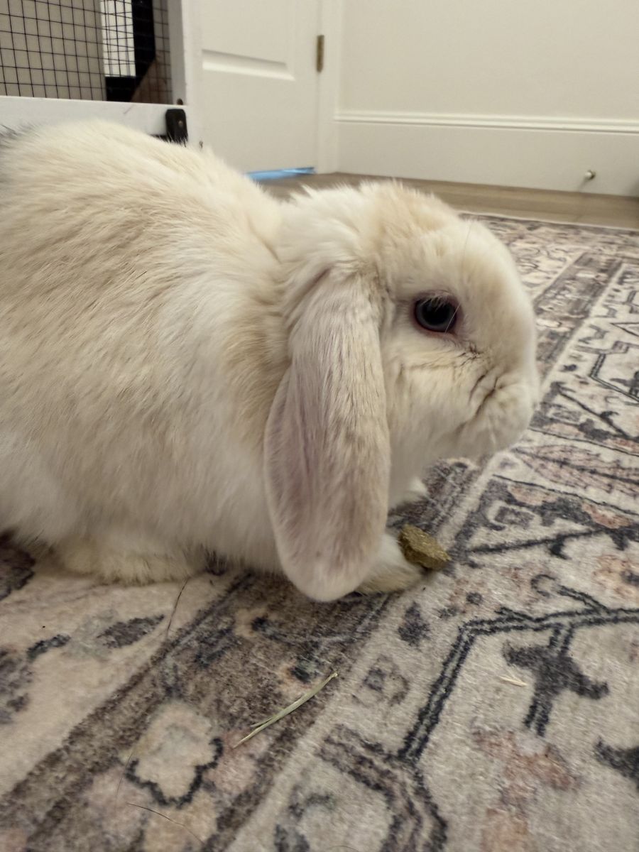 My daughter got this cute hollond lop bunny for Christmas but has now decided to serve a mission. He is 5 months old. Comes with the cage and everything he needs! He's been around kids and played with everyday, so he is very friendly and cuddly.