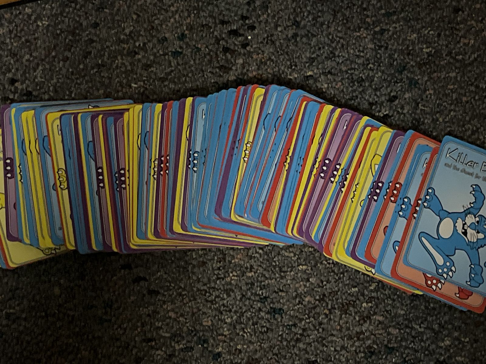 ZelleKiller Bunnies and the Quest for the Magic Carrot is a super fun game that ranges from fun to fanatical, depending on how many booster decks (bd) you add. Included in this set are the blue starter deck, yellow bd, red bd, and purple bd, (those four have been played, but we never got around to adding the rest before my kids left home). The remaining decks are new, though some are opened: pink bd, steel bd, orange bd, green bd, khaki bd, and onyx bd. Prepare to attack, defend, and spend those Kabala Dolla!