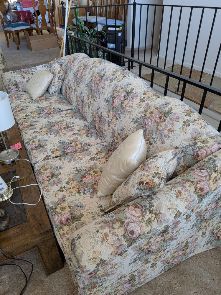 This floral couch is extra long and is in like new condition. Dimensions: 8' w x 32" h x 36" d Pet free, smoke free home. No stains.