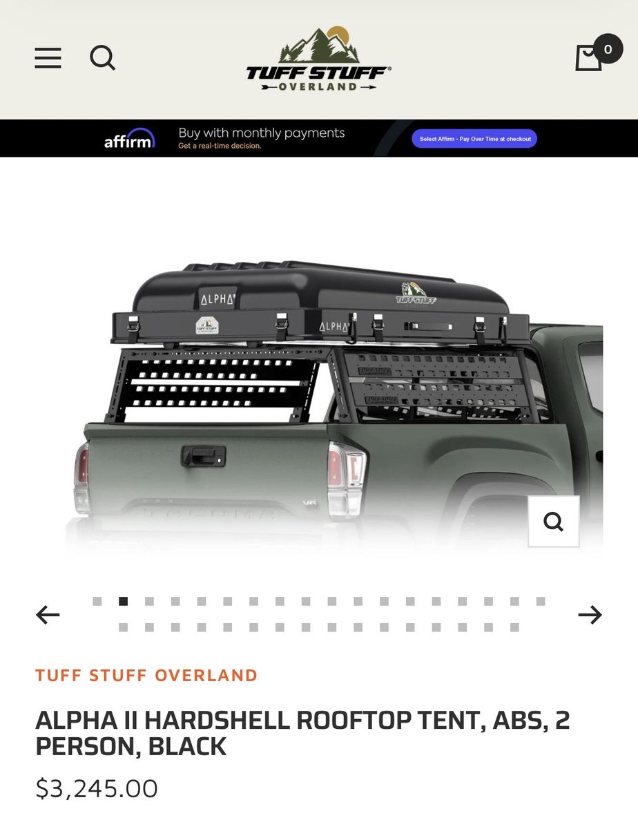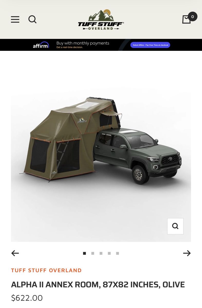 Selling my Tuff Stuff Alpha 2 clamshell roof top tent with annex spare room and awning. The tent has been used less than 10 times, and the annex and awning have never been used. Annex was set up in my yard to see the fit, but awning has never been taken out of the package. All three retail for $4,527 with tax as of time of posting