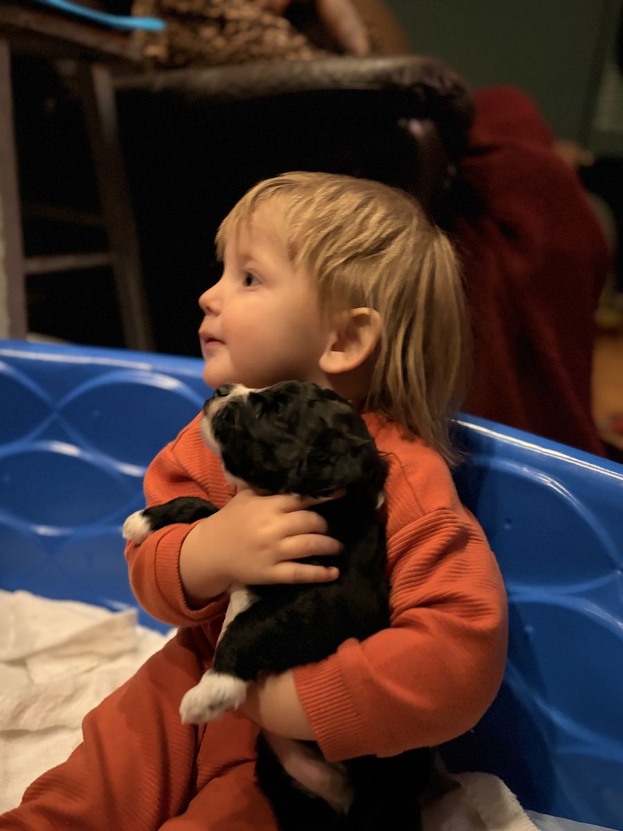 VenmoBorn on 1•23, these adorable Schnoodle puppies will be ready to go to their new homes just in time for Easter! Their mom, Scout, is a purebred Standard Poodle who was bred with therapy aptitude and has served our family as a therapy dog for our daughter for four years. She’s the best at what she does! Their dad, Tab, is a purebred Miniature Schnauzer who absolutely lives for his boy. They both have the most incredible personalities and perfect temperaments-both traits that they passed to their pups. They also passed on hypoallergenic coats and virtually no shedding! These puppies have received ENS training and will come with health checks from our vet, as well as their first vaccinations. They are priced at $1,000 for males and $1,100 for females. Picture 1: Pepper is a black and white girl with the plushest wavy coat you’ve ever felt. She is adventurous and extremely affectionate. Picture 2: Artemis is a pure chocolate girl with the tightest curl pattern of any of the pups. We predict that she’ll have a coat most like her mom and will not shed at all. She has a playful personality, though she’s timid at first. Picture 3: Clark is a chocolate boy with one little white patch on his chest. His fur has slight wave and is super soft-we predict that it will be a loose curl when he reaches maturity. He is the most adventurous and outgoing of the puppies. Picture 4: Brownie is a handsome tricolor boy with a plush wavy coat and handsome green eyes! He is the biggest of the pups and is the gentlest of giants. He’s a big ol’ cuddle bug. Picture 5: Rusty has the most unique coloring of all the puppies! He’s mostly brown & tan but has splashes of white, with a white patch on his back that looks almost like a heart-which is fitting because he is the chillest and loviest of the pups! His fur is the most like his dad’s. It will likely be very lightly wavy & won’t shed. Picture 6: Rusty’s heart patch🧡 Pictures 7-17: Pictures of Mom & Dad currently, as babies & in their elements as therapy/family dogs.