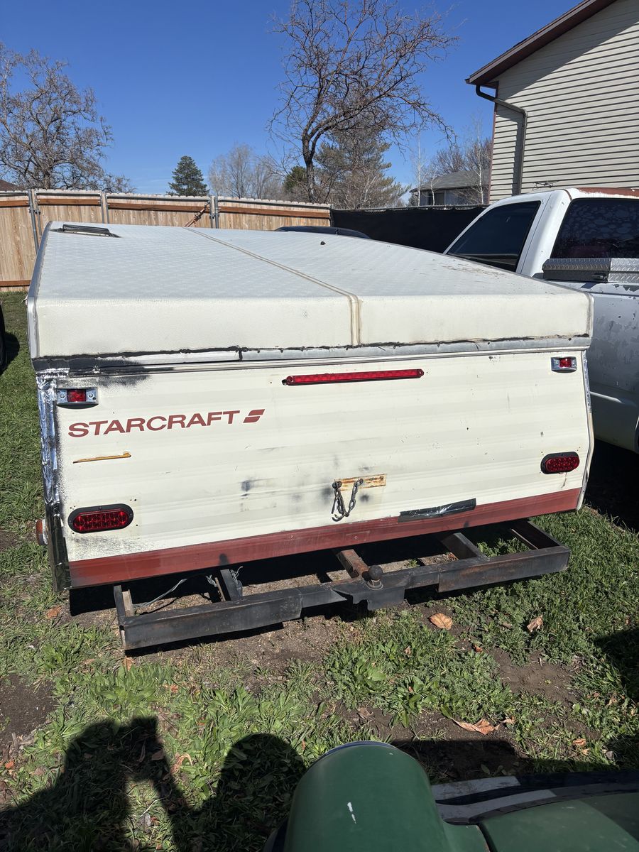 VenmoNeeds work, main issue is the crank to raise the canopy broke so it needs to be replaced in order to raise the canopy. I was gonna put an electric wench on it from harbor freight they are $50 but plans changed. The wiring is also not grounded correctly so when connected to vehicle with vehicle lights off the trailer lights works fine but if vehicle lights are on the trailer lights don’t work. Interior seems to be in good condition I haven’t seen any leaks. Exterior has some wear and tear but all seems are sealed. No propane tank. No battery, i have the title but it’s been filled all the way out and has a bill of sale to go with it but I’m guessing the title would work just fine to get a new one. $500 obo need gone asap