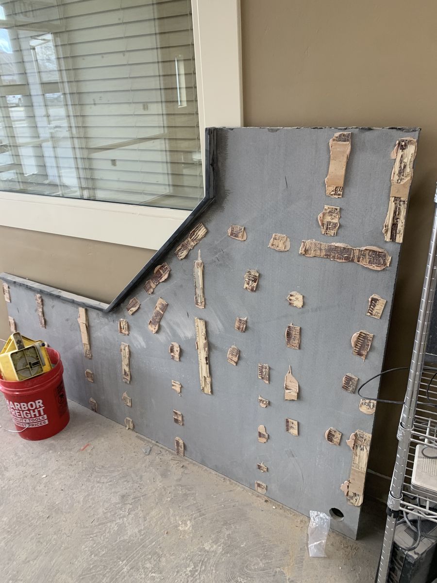 This is a two part receptionist counter top or use for what ever you want. Black granite or marble - I’m not sure. It used to be three pieces but one was tossed in the demo. Measurements:
