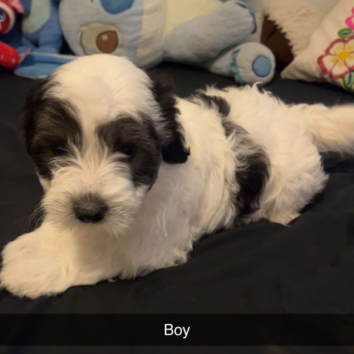 They have been vaccinated. They were born January 15. Mom is a cotton dog and dad is a mini golden doodle, they are hypoallergenic. Wont grow bigger than 25lb. Females are $1400 and males are $1200. Price is negotiable. Text me for more info and pictures