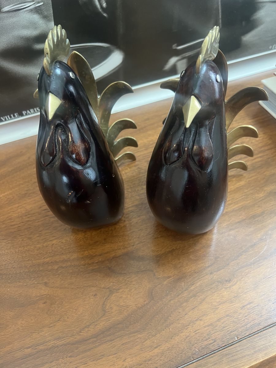VenmoBeautiful Pair of vintage Korean roosters figurines, with wooden body and brass tails. In good shape with some signs of wear.cash or Venmo.