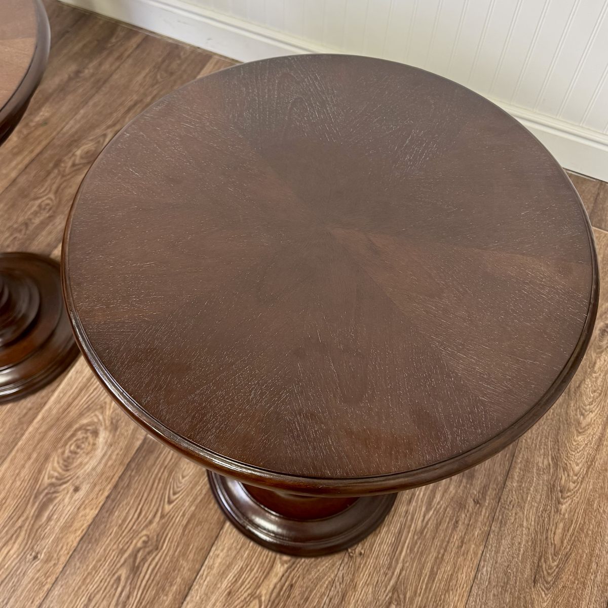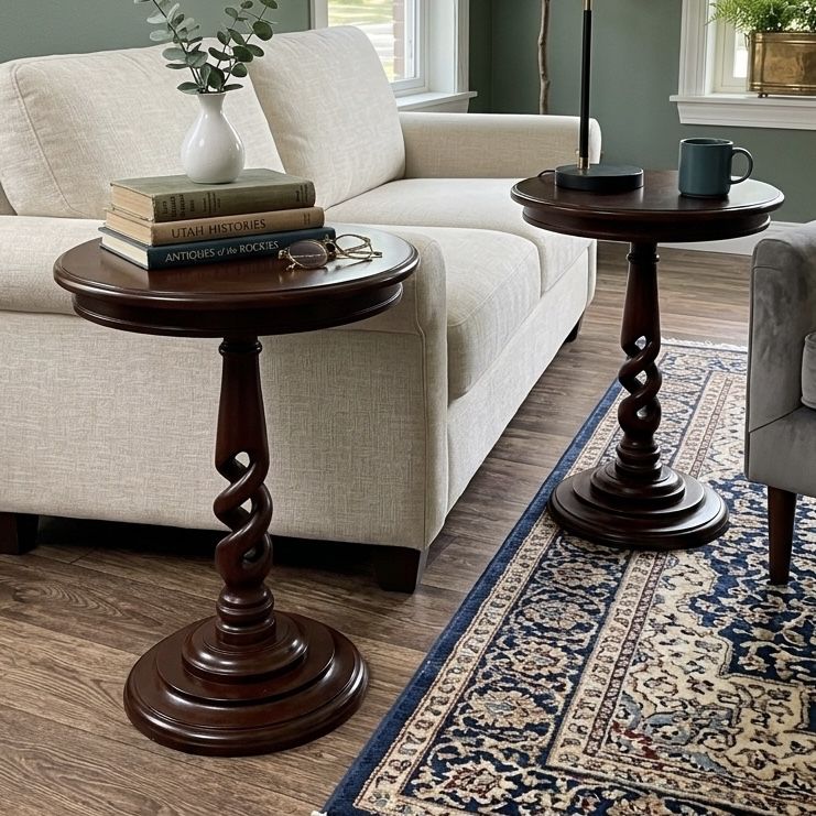 These are sturdy, well-maintained pieces that can be used as side tables next to a sofa or bedside nightstands. They fit perfectly in traditional, transitional, or moody “dark academia” interiors.
