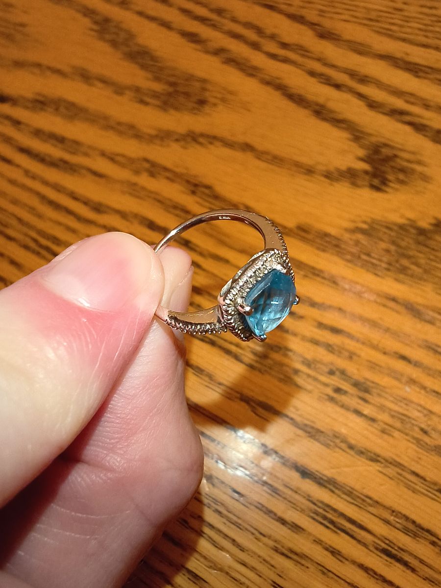 I got this in 2014. It was listed for $600 but I got it on a sale for 62% off-$233 I have the original tag and receipts. it was resized two different times down to the 5.5. could definitely be resized back up or down asking 240 OBO. These aren't the best pictures of it-it hasn't been cleaned in a very long time probably 12 years so I'm sure it would look much prettier after cleaning. It is a very pretty ring - my ex got a lot of compliments on it. Come take a look at it.