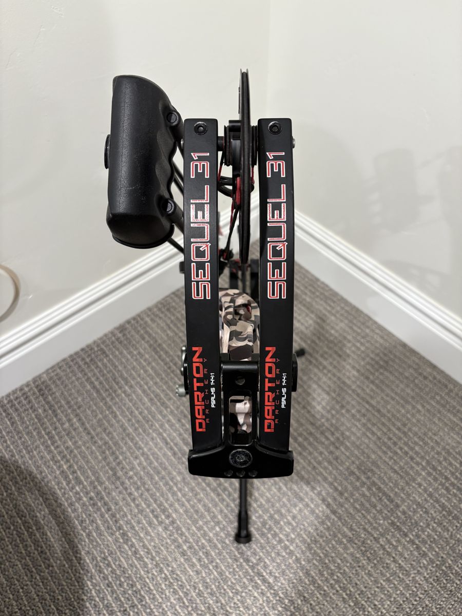 Darton Sequel 31 in basically brand new condition. No scratches or wear at all. Just had brand new Gas strings put on with install and tune. Has both speed and comfort mods. Comes fully set up with a CBE Trek Pro sight, CBE Torx 15, CBE Torx 10” bar, gripper back bar mount, TightSpot quiver, QAD HDX rest, and Hoyt Go Stix 2.0. 70lbs bow but pulling around 75 maxed out