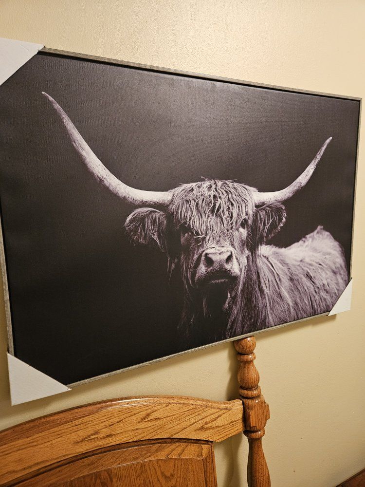 VenmoThis is a new canvas print of a Highland cow. Measures tall 24", wide 36", deep 1 1/2". No damage, from a smoke and pet free home. I'm moving from a house to an apartment. Please see my other listings. Thank you!