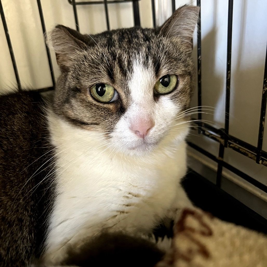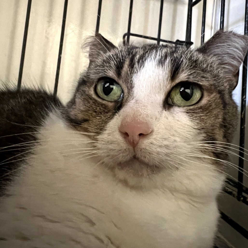 Meet Estelle, a four-year-old silver and white tabby with the sweetest little baby face. Her soft coloring is lovely—light, delicate tabby markings across her upper body that deepen into richer tones along her back and tail. Estelle came to us after her owner had to surrender her. While big changes can be a little confusing, Estelle is ready to begin a new chapter with a family who will cherish her. With her gentle expression and calm presence, Estelle has a way of quietly stealing hearts. She’s the kind of cat who will look up at you with those soft eyes and make a house feel instantly more peaceful. Whether she’s lounging nearby or keeping you company during a quiet moment, Estelle brings a comforting sweetness wherever she goes. This pretty girl is hoping her next home will be her forever one. If you’re looking for a companion with an irresistible baby face, Estelle may be your match.