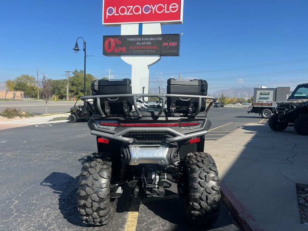 New 2026 CFMOTO CFORCE 1000 Overland ATV For Sale In Salt Lake City, UT This New 2026 CFMOTO CFORCE 1000 Overland ATV is for sale at Karl Malone Powersports SLC conveniently located in Salt Lake City, Utah. Our knowledgeable team is eager to assist you, so don’t hesitate to contact us today to schedule an appointment. If this isn't the exact CFMOTO ATV you're looking for don't hesitate to go back and revise your search. We're sure to have the perfect ATV for you in our showroom in Utah. We invite you to visit us at Utah’s premier CFMOTO dealer for new and pre-owned ATVs for sale. Let us help you find the ideal ATV to take home today! Karl Malone Powersports SLC Address: 1379 W 3300 S, Salt Lake City, UT 84119 Phone: (801) 972-8725 2026 CFMOTO CFORCE 1000 Overland EVERYTHING YOU WANT. ALREADY ON IT. The CFORCE 1000 Overland isn't just built for the job—it’s built for every job, every journey, and every unforgiving stretch of trail. And it shows up fully equipped. No weekends spent bolting on upgrades. No choosing between hauling gear and hauling butt. You’re getting the whole package: 963cc V-Twin with 84 hp and 62 lb-ft of torque. OmniDrive™ CVT. High-clearance suspension. Beadlock wheels. 3,500-lb. winch with synthetic rope. Full fairing with windscreen. Heated grips. Premium hard-side travel cases. Downhill assist. Three ride modes. 7" full-color TFT with Bluetooth. Other ATVs make you check boxes. This one checks all of them for you. Features may include: 963cc V-Twin Engine Power comes easy when you’re packing an 84 hp, liquid-cooled 8-valve V-Twin with 62 lb-ft of torque. From low-end grunt to high-speed runs, this engine is tuned for confidence no matter the load, terrain, or altitude. OmniDrive™ Continuously Variable Transmission Our strongest, most advanced transmission yet. OmniDrive™ delivers smoother shifts, better heat dissipation, and improved durability in punishing conditions. Designed in-house. Tested in the wild. Hard-Side Travel Cases Two premium weather-sealed cargo boxes come installed and ready to work. No dealer upcharge. No extra install time. Just grab your gear and go. Beadlock Aluminum Wheels with 27” CST Clincher Tires Go harder and farther on 14-inch aluminum beadlock rims wrapped in CST Clincher rubber. Built for traction, bite, and confidence when the ground turns unpredictable. 3,500-Lb. Winch with Synthetic Rope Lighter, stronger, and safer than steel, the synthetic rope winch comes standard. Rated to pull 3,500 pounds. Ready when you need to rescue your buddy—or yourself. Full Fairing with Windscreen and Hand Guards Ride longer and in more comfort with a rugged front fairing that knocks down wind, rain, and brush while keeping your grip protected and your line of sight clear.