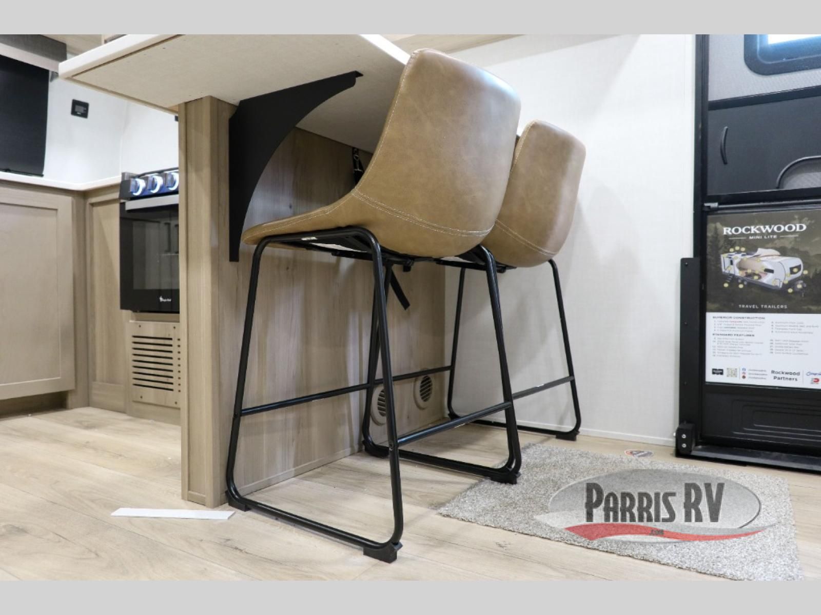 Each Rockwood Mini Lite travel trailer by Forest River is constructed with a fully laminated one-piece walkable roof, sleek frameless windows, and a six-sided full aluminum frame for strength and durability. The 12V thermostatically controlled heated tanks, plus radiant foil in the underbelly will allow you to camp well into the colder months, and the 200W roof solar panel will be perfect for a little off-gridding. Each model includes solid surface kitchen countertops, hidden hinge cabinet doors, roller shades, plus many more interior features. Having an AIR 360+ omnidirectional antenna with WiFi prep on board gives you the option to get some work done if it's needed, and the power tongue jack provides hassle-free set up, so you can enjoy more time relaxing!