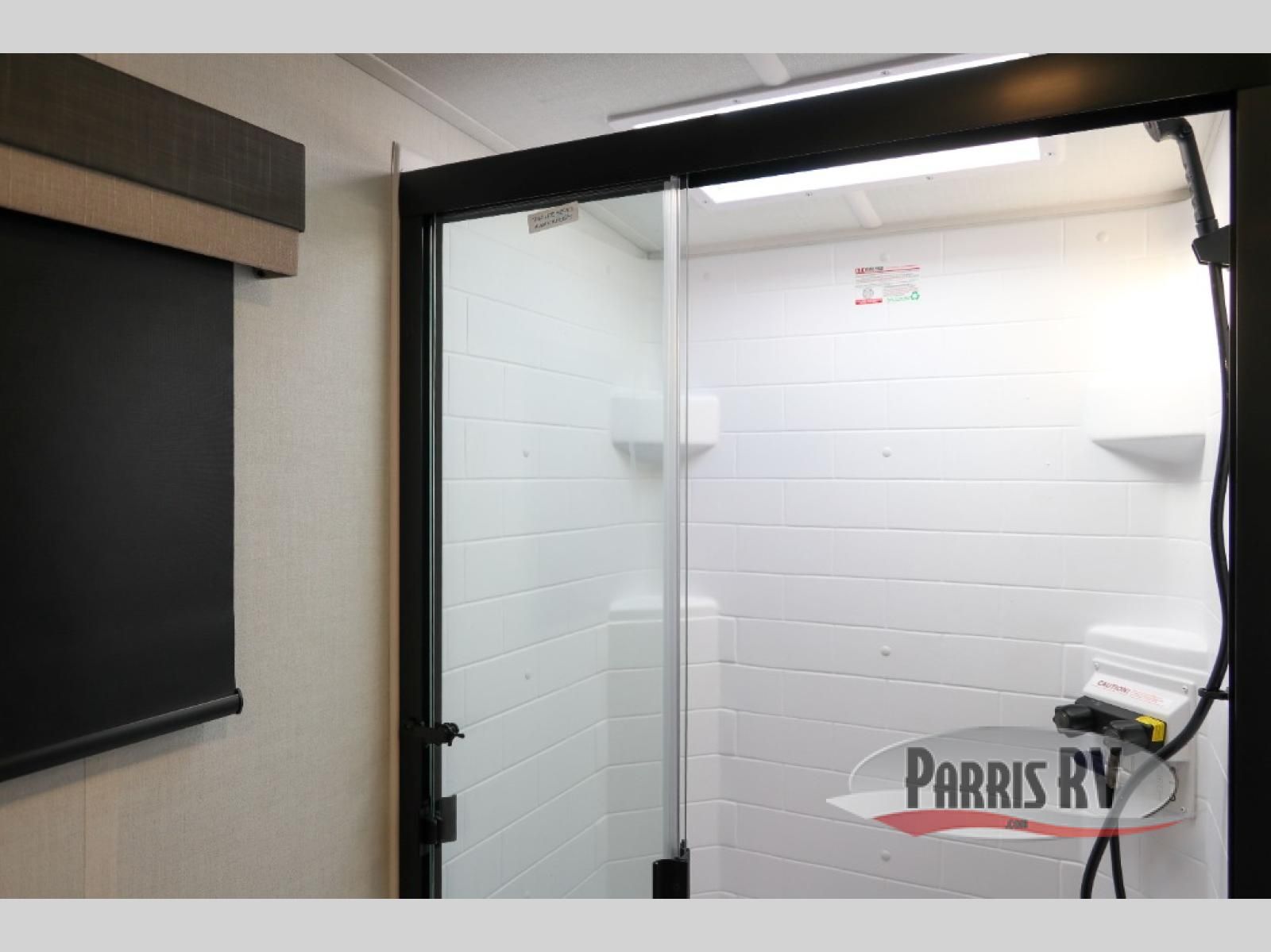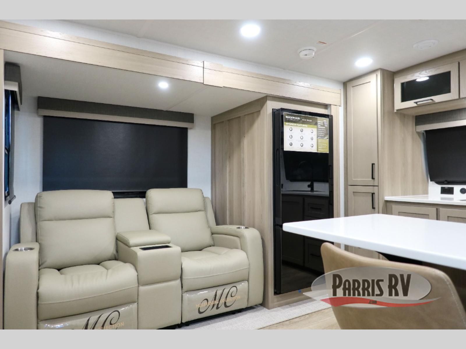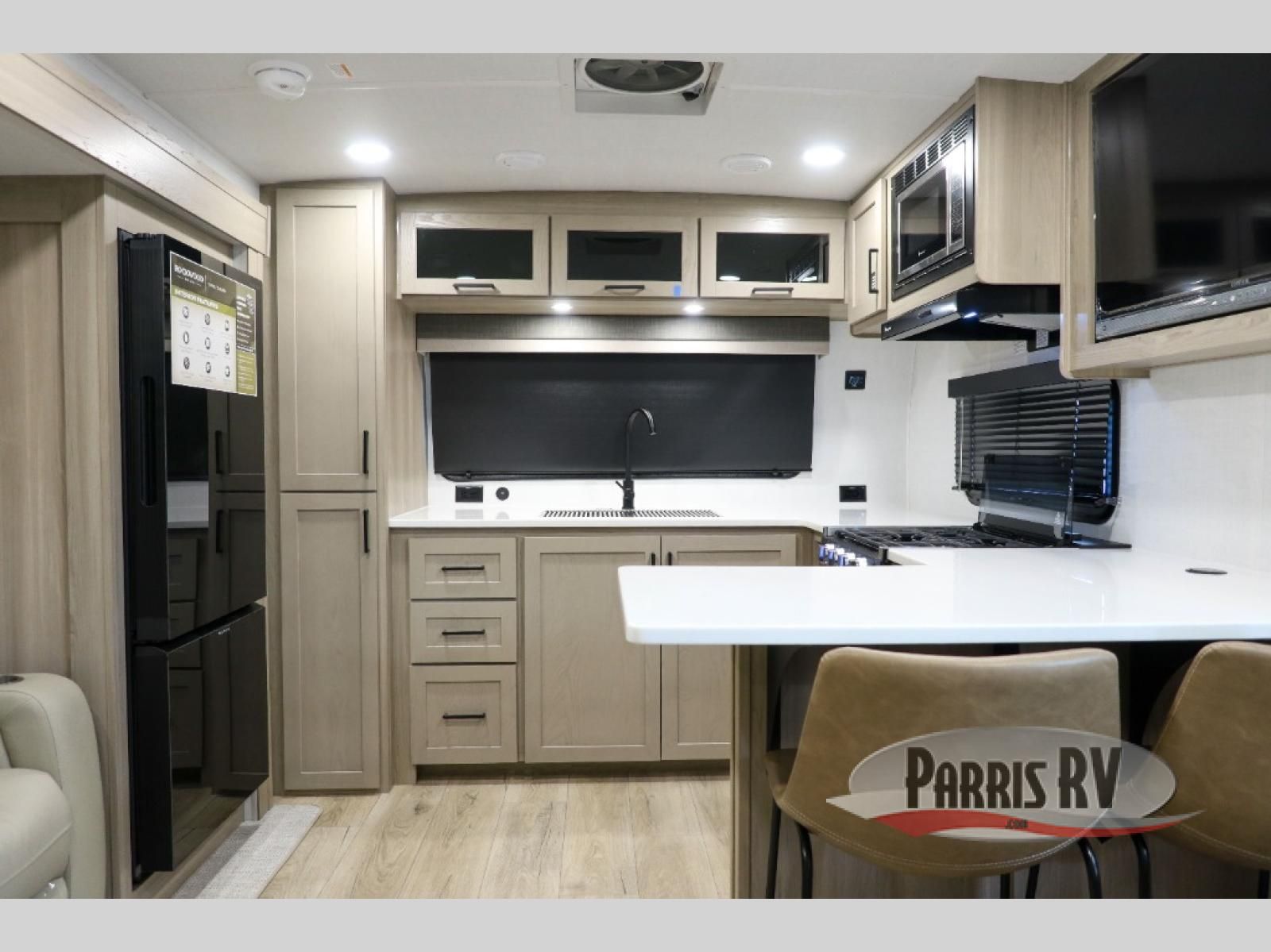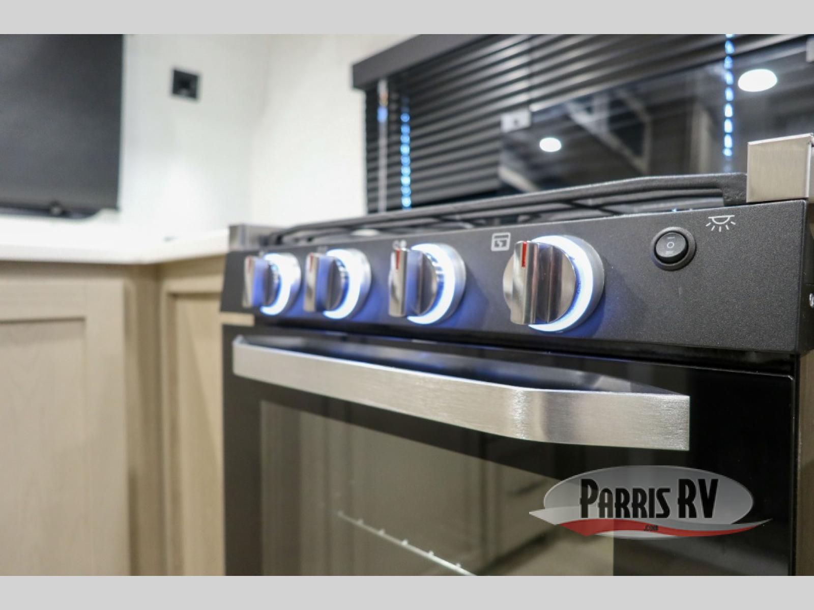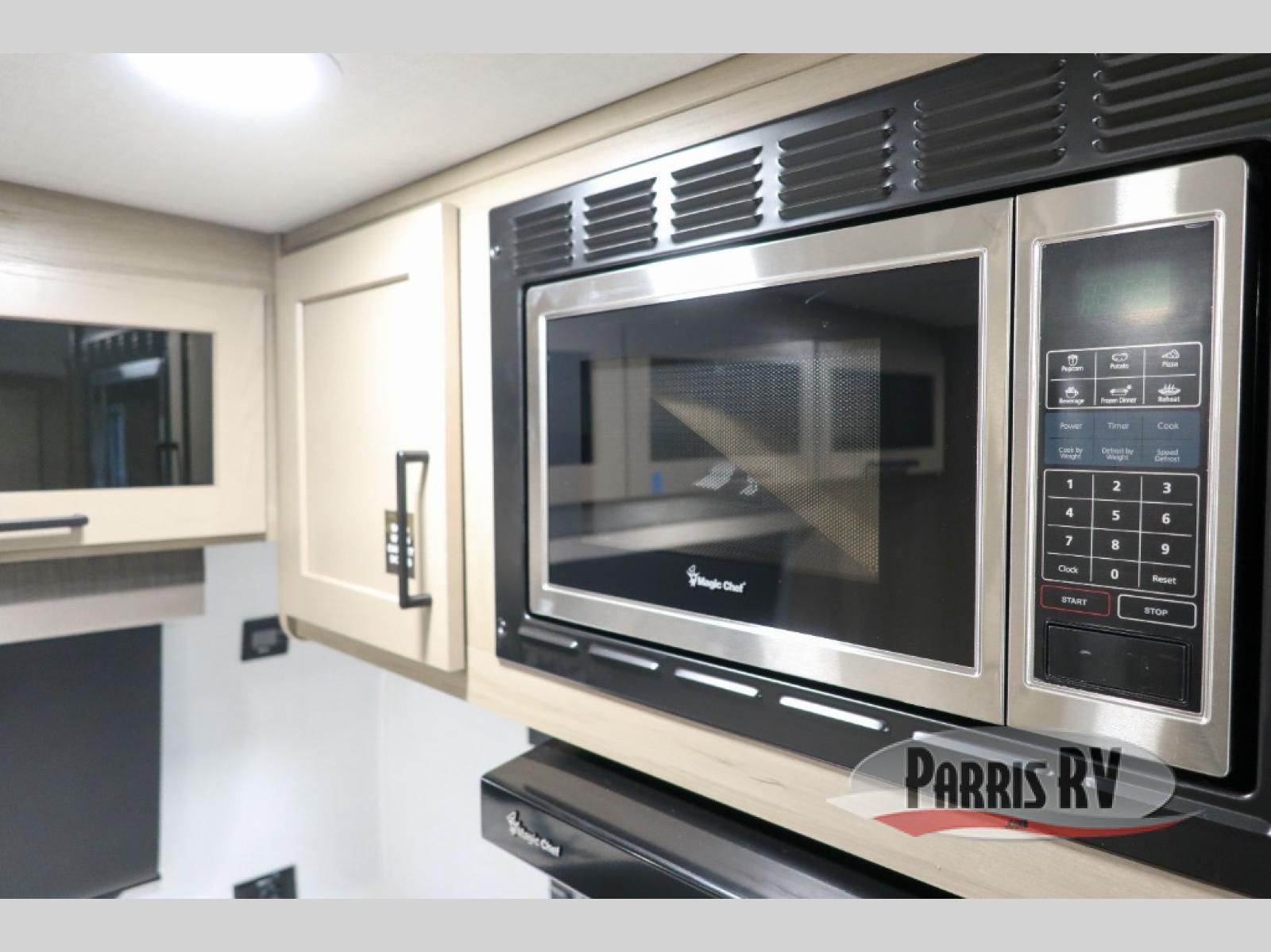 This travel trailer is the best option for you and your partner! The lavish full rear bathroom features a spacious layout and a convenient linen closet, perfect for relaxation and refreshment. The elegant bedroom boasts a plush queen bed, ample wardrobe space, and stylish dresser, creating a serene retreat. The spacious living room and kitchen combined area is the heart of the trailer, featuring plush theater seating for cozy movie nights, a generous closet for storing essentials, and a 12V Smart TV for entertainment on the go. Plus, the expansive countertop with chairs provides a perfect spot for gourmet meals or socializing, while the premium three-burner cooktop, kitchen pantry, and microwave make meal prep and cooking a true delight.