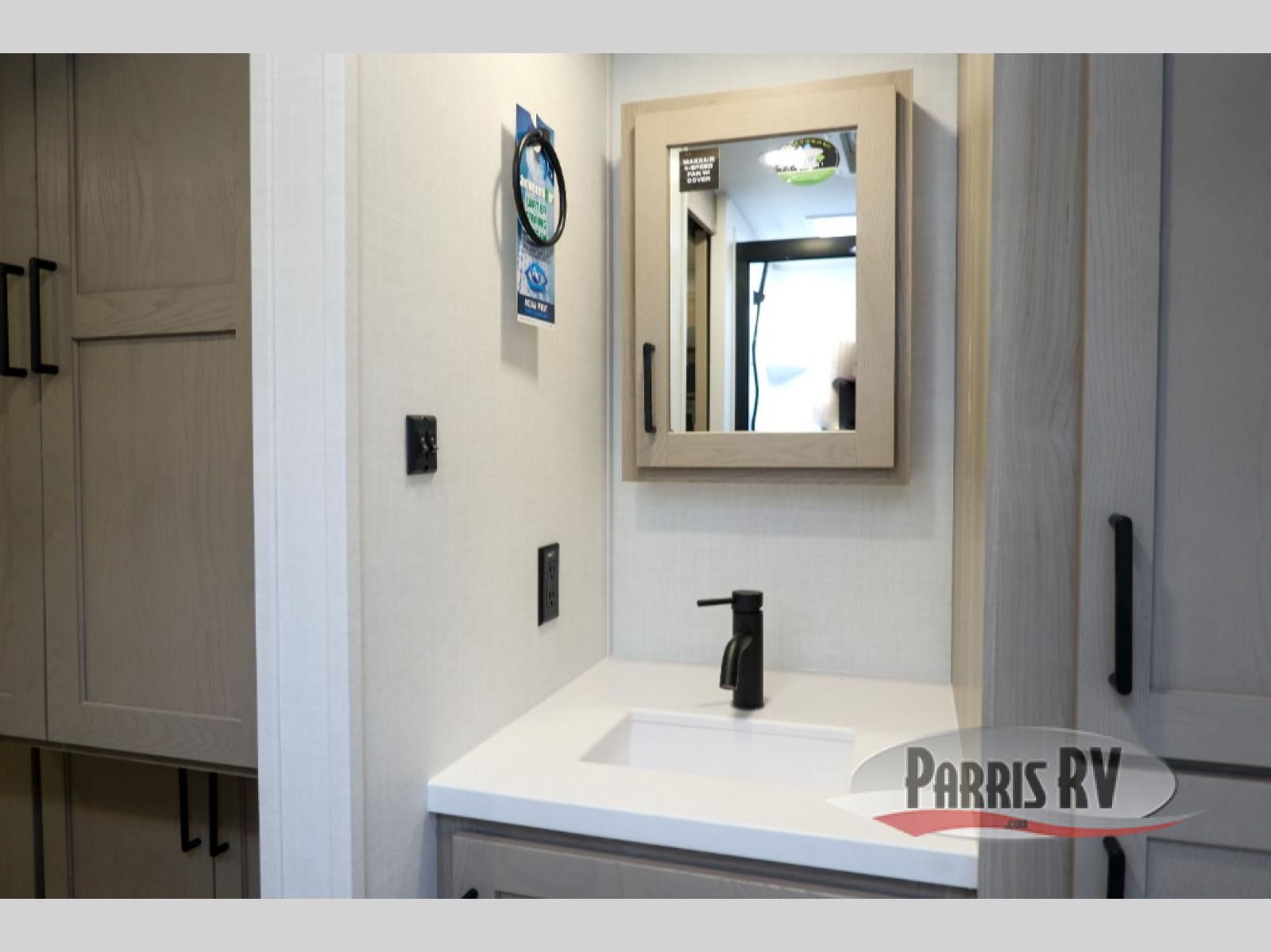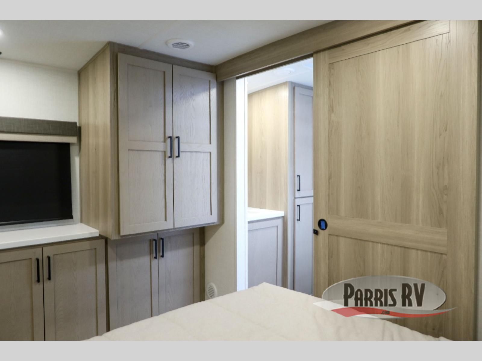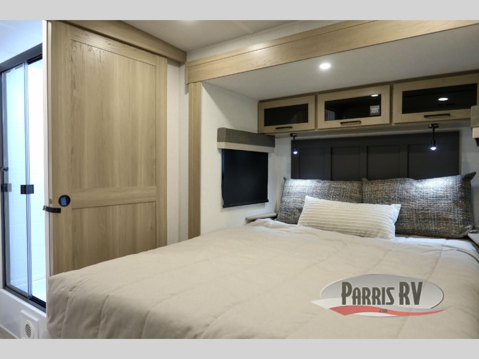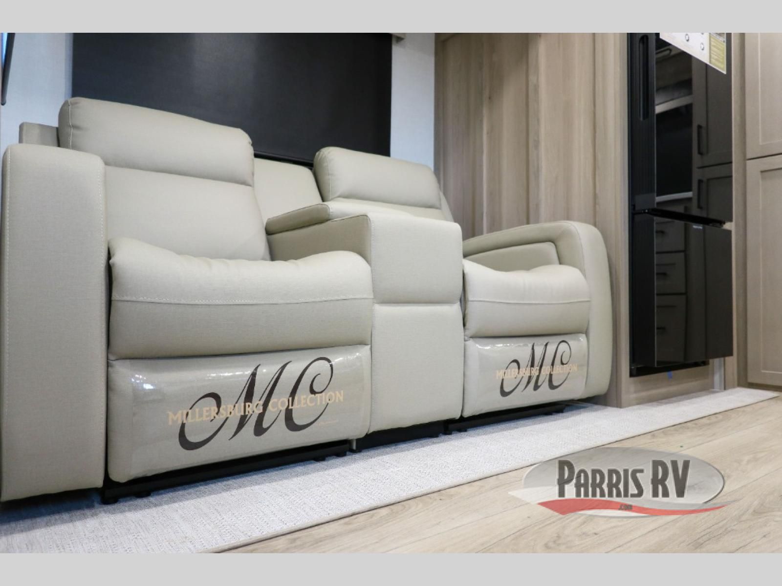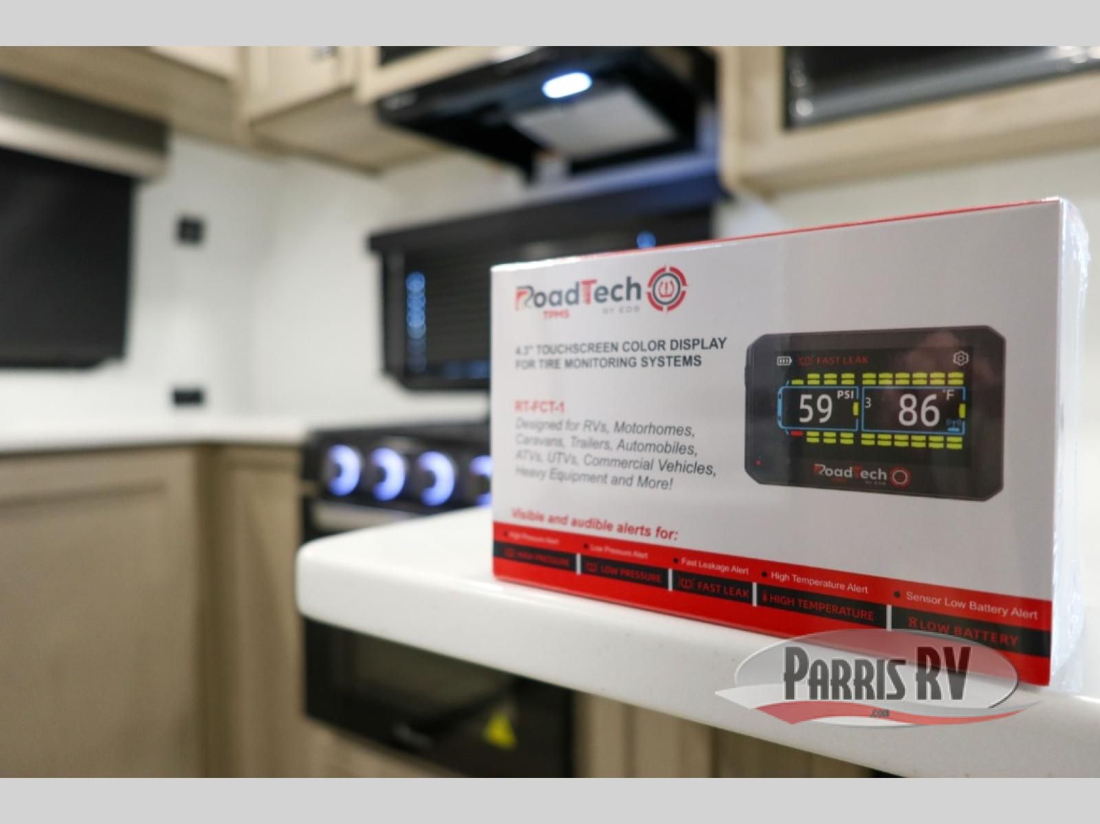 This travel trailer is the best option for you and your partner! The lavish full rear bathroom features a spacious layout and a convenient linen closet, perfect for relaxation and refreshment. The elegant bedroom boasts a plush queen bed, ample wardrobe space, and stylish dresser, creating a serene retreat. The spacious living room and kitchen combined area is the heart of the trailer, featuring plush theater seating for cozy movie nights, a generous closet for storing essentials, and a 12V Smart TV for entertainment on the go. Plus, the expansive countertop with chairs provides a perfect spot for gourmet meals or socializing, while the premium three-burner cooktop, kitchen pantry, and microwave make meal prep and cooking a true delight.