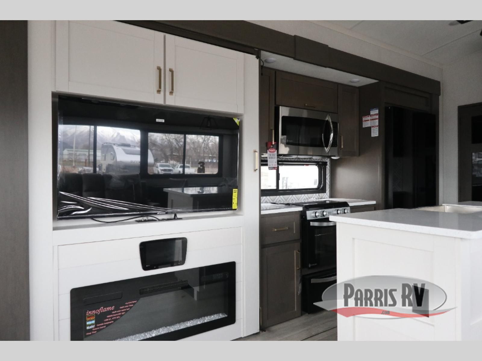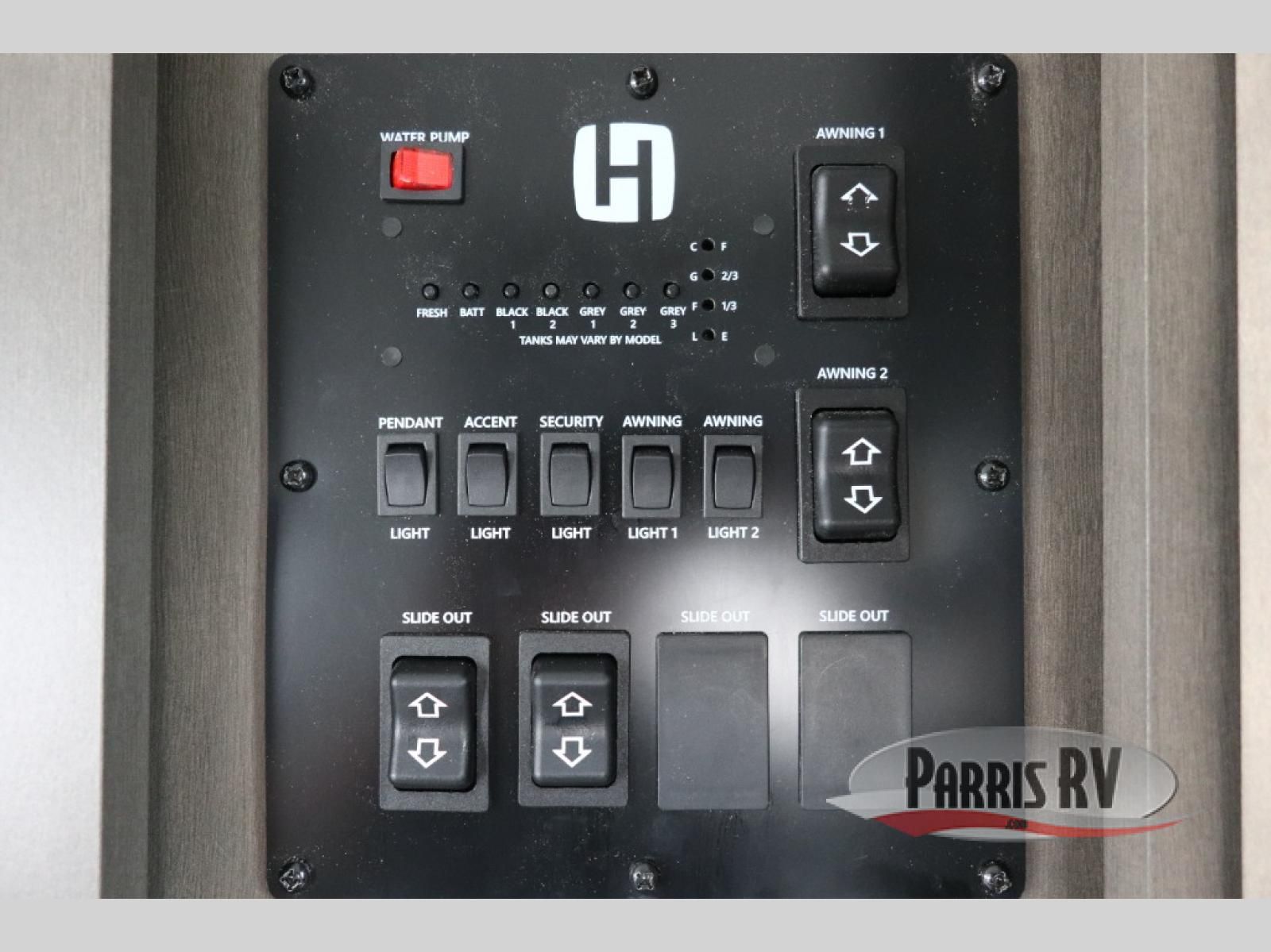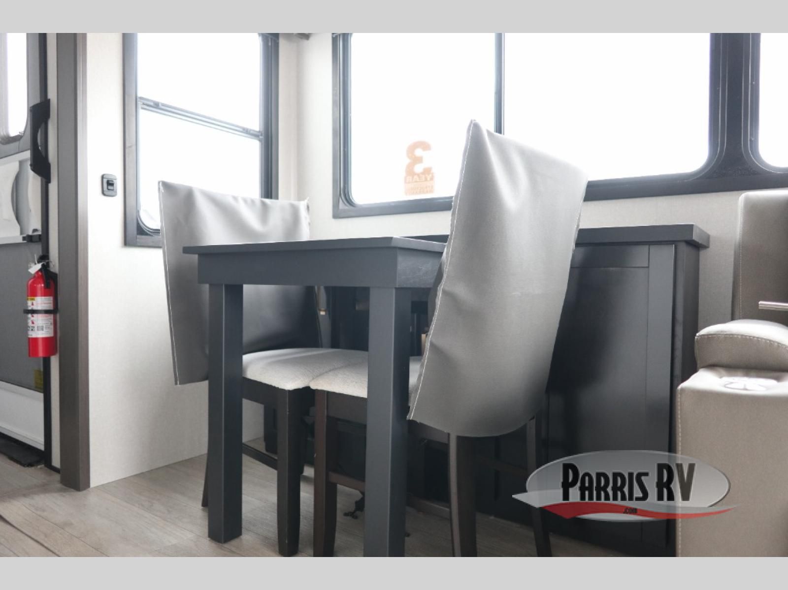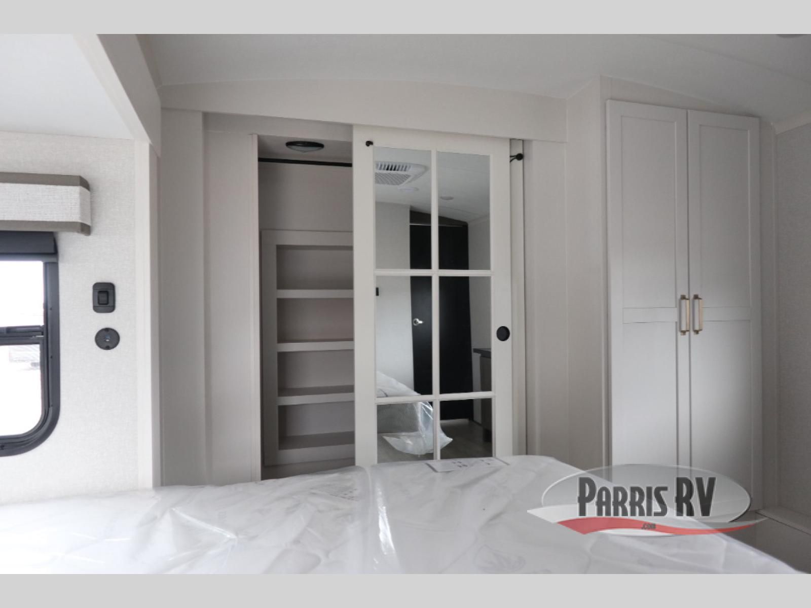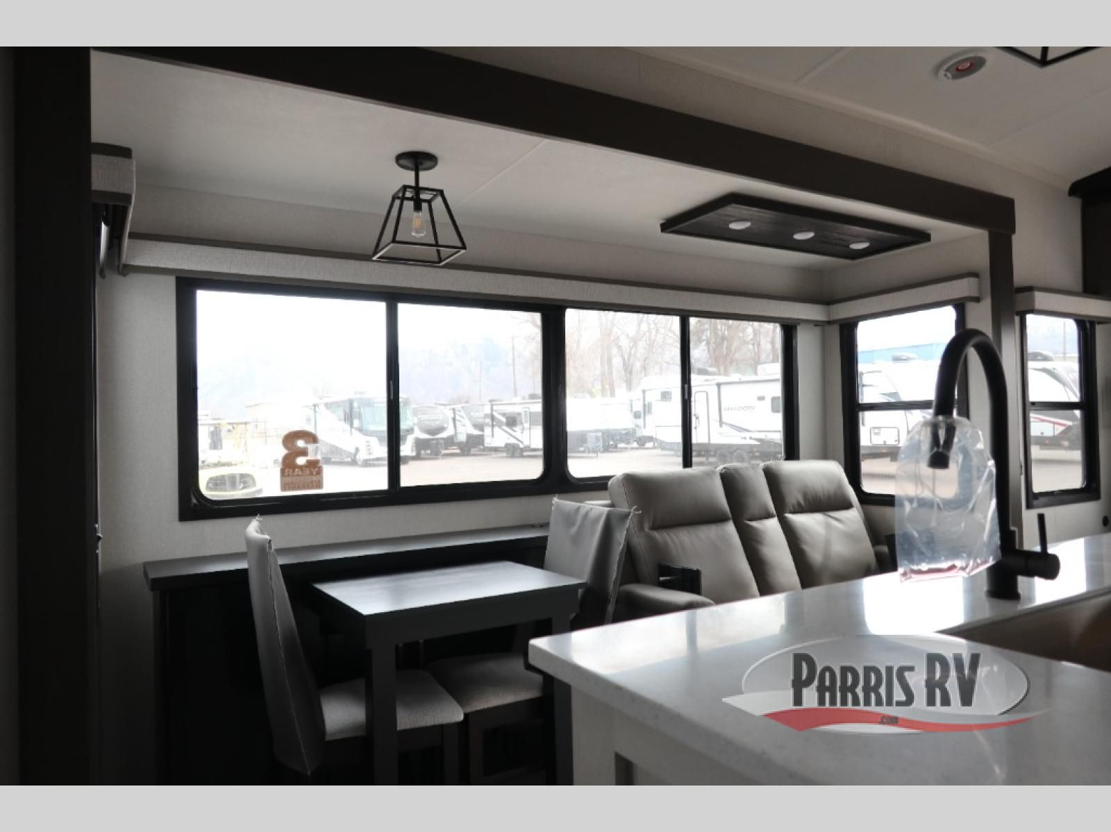 The Heartland Milestone is a full-profile luxury fifth wheel that is ready to help you make the most of your adventures! You will find a TrussTXL Roof System with Alpha roof membrane system offering quality exterior protection, and the Power Up Solar that includes a 200 watt solar panel will let you go off-grid when the adventure calls for it. The upgraded MORryde Step Above entrance steps will help you enter your unit with ease, and the 6-point hydraulic auto-leveling system comes standard to help you keep your unit secure while camping. The interior kitchen has some great features, like residential solid surface countertops and a large farmhouse sink. There are roller night shades throughout each unit to have privacy and comfort.