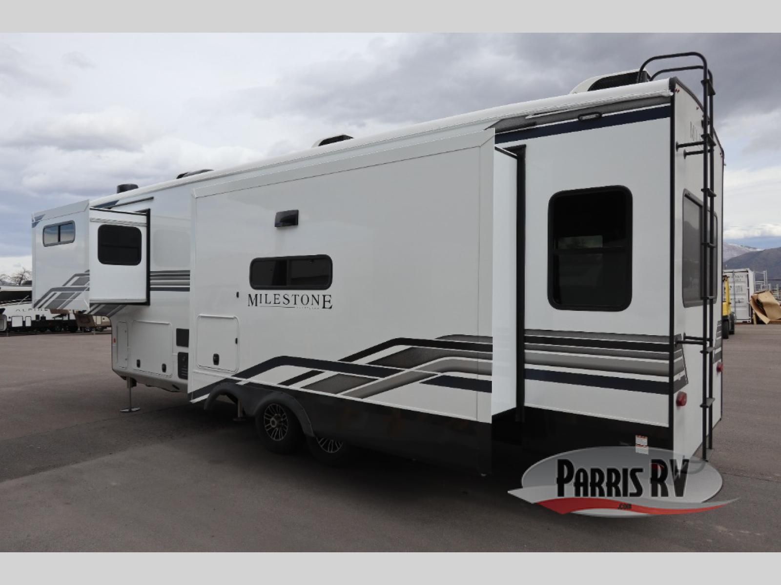 You'll be able to see the country in full luxury with this Milestone fifth wheel! There is a private bedroom in the front with a king-size bed where you can sleep comfortably each evening.The kitchen has all the appliances you will need to make the most out of your trips featuring a convection microwave, 21" oven, and a 16 cu. ft. 12V refrigerator. The living room will make for a great entertaining area, you can relax on the 78" hide-a-bed sofa that will serve as a bed so you can sit back and even have a nap! There is a full bathroom that has a 30" by 48" shower to freshen up each day. This RV has a wonderful design featuring dual opposing slides that will make for the real residential experience and make the most out of your travel.