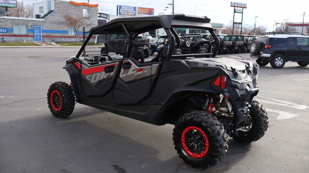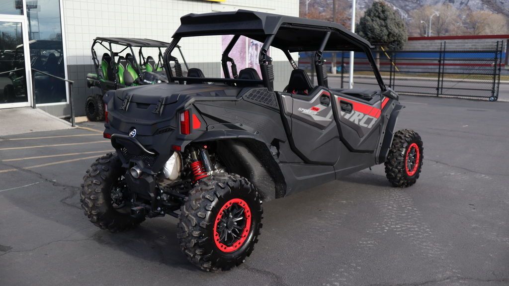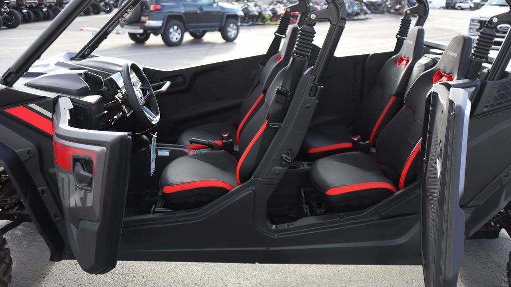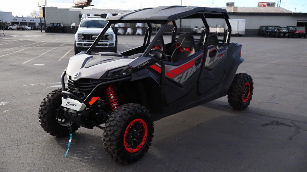 2026 CFMoto ZFORCE 950 Sport-4 FOUR BOLSTERED SEATS. ONE SHARED ADDICTION. The ZFORCE 950 Sport-4 takes the same aggressive DNA as the 950 Sport and stretches the wheelbase to fit four full-sized bolstered seats—so everyone can chase the adrenaline together. The 963cc V-Twin engine delivers 83 horsepower with SPORT and NORMAL ride modes to match terrain or mood. Dual-mode power steering and long-travel suspension keep the ride sharp, while 27" CST tires provide grip that bites when the trail gets loose. Add in premium cabin touches, 12 inches of ground clearance, and cargo space to match—and you’ve got one serious addiction that’s impossible to keep to yourself. Features may include: 12" Ground Clearance Confidently clear trail debris and terrain changes without scraping or dragging. Electronic Power Steering (EPS) Dual-mode EPS offers steering assist that adapts to both speed and selected power mode—light and responsive in tight turns, solid and planted at high speed. Protective Half Doors Formed from tough composites and engineered to deflect trail clutter, the half doors provide solid side protection without sealing out the wild. Hinged and contoured for easy in-and-out, they come standard—not as an afterthought or costly upgrade 27" CST Stag Tires Durable, aggressive tread delivers excellent traction and a comfortable ride across dirt, gravel, rock, and hardpack. Extended Wheelbase with 4-Person Seating The longer chassis accommodates four full-sized riders without compromising handling. Bolstered seats and deep footwells help everyone stay planted and comfortable. Integrated Storage + Cargo Box Includes an 18-liter central console compartment and a standard rear cargo box for tools, straps, and supplies—perfect for long days with passengers or gear.
