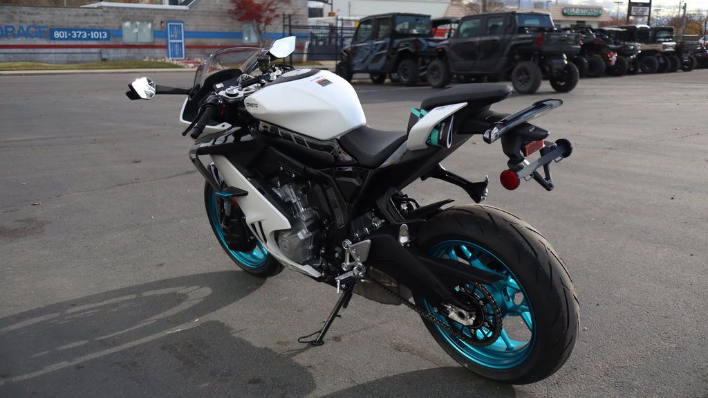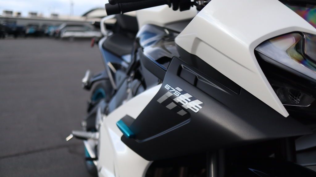 2026 CFMoto 675SS ENTER THE TORQUE ZONE.? Behold 429 pounds of aluminum, electronics, and attitude—driven by a 675cc inline-triple unleashing 95 horsepower at 11,000 rpm, with torque that shows up early and builds smoothly. The adjustable KYB suspension reads ribbon after ribbon of curvy asphalt. Winglets and a steering damper keep the bike arrow-steady while the belly-mounted exhaust belts out its signature growl. A full-color 5-inch TFT dash streams the vitals—Bluetooth®, RideSync®, TPMS. Bosch® traction control and dual-channel ABS rev your confidence. Another lean is all it takes to understand: this bike doesn’t just meet your expectations—it resets them. And the price? Welcome to the affordable zone. Features may include: Aggressive, Balanced Design Low bodywork, angular panels, and a forward pitch give the 675SS its unmistakable silhouette. The stance is aggressive, the proportions are balanced, and the weight bias is tuned for handling. 675cc Inline Triple Engine – 95 Horsepower This purpose-built triple delivers 95 horsepower at 11,000 rpm, but its real strength lies in the way it delivers. Torque arrives early and flows evenly, giving the rider a continuous, linear response from low revs to redline. Power builds with calm urgency—always ready, never rushed—making the engine feel less like a machine and more like a willing partner. 5" Full-Color TFT Display with Bluetooth®, RideSync®, and TPMS Stay fully informed and connected. The vibrant dash integrates tire pressure monitoring, turn-by-turn directions via RideSync®, and Bluetooth® for calls and media—all at a glance. Full LED Lighting From the sharp projector headlight to the slim tail and signal lights, the full LED system enhances both form and function. Brighter, faster to illuminate, and more efficient than traditional bulbs, LEDs help you see farther, react quicker, and stay visible to everyone around you. It’s modern lighting for a machine built to move fast and be seen. J.Juan Brakes – Twin 300mm Front Rotors, 4-Piston Calipers This is serious stopping power, with a crisp bite and progressive feel. Whether you’re braking hard or scrubbing speed approaching a corner, these brakes deliver the kind of confidence that encourages you to push just a little harder. Signature LED Taillights Sharp LED taillights complete the rear view and add instant-on visibility that looks as good as it functions. You’ll know it when you see it.