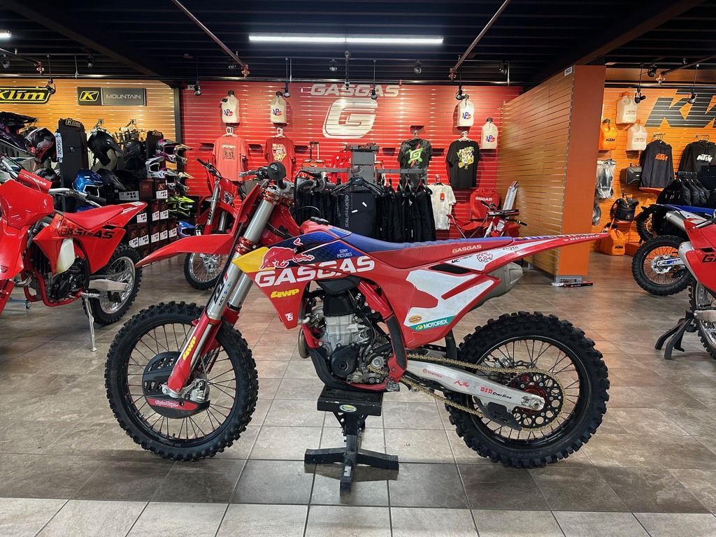 Designed and built to win! The MC 450F Factory Edition is as close as it gets to a full-on race bike! For 2024, our engineers focused on rider customization – allowing racers to set the power the way they like it, by using the new Connectivity Unit. Once it’s paired with the new GASGAS+ app on a phone, it’s super easy to adjust the power delivery to create your very own engine map, based on how you like to ride. Put simply, this is factory bike tech as standard. Finishing the bike off are the very best Technical Accessories, new Dunlop MX34 tires, and the latest Troy Lee Designs/Red Bull/GASGAS Factory Racing graphics.