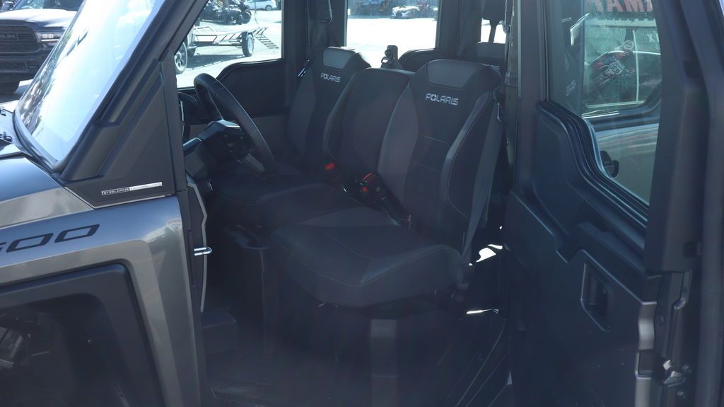 2025 Polaris® Ranger Crew XD 1500 NorthStar Edition Ultimate OUTWORK THEM ALL IN ANY WEATHER RANGER XD 1500 is the strongest, most capable, most comfortable RANGER. NorthStar offers all-season comfort thanks to a fully enclosed cab, HVAC, and elevated in-cab amenities. Features may include: Unlock Exclusive NorthStar Features Elevate your ride for work or play with NorthStar comfort and convenience. Climate control, connected tech, premium audio and more deliver an exclusive off-road experience. Complete Climate Control The upgraded heating and air conditioning (HVAC) system offers 5 different air flow settings and a recirculation setting to draw air from inside the cab instead of outside for faster, more efficient heating and cooling. RIDE COMMAND Elevate your off-road experience with the power of RIDE COMMAND—the original, nationwide off-road mapping system. UNPRECEDENTED CAPABILITY RANGER XD 1500 is engineered to tackle the toughest jobs with industry-leading capability. Power Your Productivity RANGER XD 1500 is powered by a 3-cylinder ProStar 1500cc engine. It pumps out an industry-leading 110 HPand 105 lb.-ft. of torque for effortless hauling and towing and confidence on tough terrain. Haul More in Less Time Save time with fewer trips and heavier loads with a 1,500-lb. cargo box capacity, a 50% larger box volume than full-size UTVs. BRUTE STRENGTH Engineered to be stronger and more durable in nearly every way, featuring longer service intervals, a high-strength, heavy-duty steel chassis, and the industry-exclusive STEELDRIVE transmission. Smooth, Precise Control STEELDRIVE is electronically controlled to deliver outstanding drivability. Enjoy smooth, predictable throttle engagement and precise low-speed control when backing up to trailers, navigating rough terrain, or spraying a fence line. Easy Shifting, Quiet Operation Easily shift between drive, park and reverse gears with a consistent, predictable feel and less effort. The fully sealed design reduces operating noise for a quieter, more enjoyable ride. Confidently Navigate Hills Confidently navigate challenging terrain. For maximum control when driving uphill, Hill Assist engages the transmission to prevent the vehicle from rolling backwards when you let off the brakes or gas. Downhill, the transmission remains engaged to assist in controlling descent. 110 HP ProStar 1500cc Engine & STEEDRIVE Transmission 3,500 Lb. Towing Capacity & 1,500 Lb. Box Capacity Lock & Ride MAX Accessory Integration Heated Seats and JBL Audio System Factory-Installed Heating & Air Conditioning (HVAC) System Enclosed Cab with Power Windows and Tip Out Winshield Electronic Cargo Box Lift and 12V Cargo Box Power Port Polaris Pro HD 6,000 Lb. Winch LED Cargo Box Light and Overhead Switch Panel 30" Kenda CrossTrail Tires & 14" Wheels 7" Display, Powered by RIDE COMMAND, with Factory Rear Camera RIDE COMMAND+ Technology