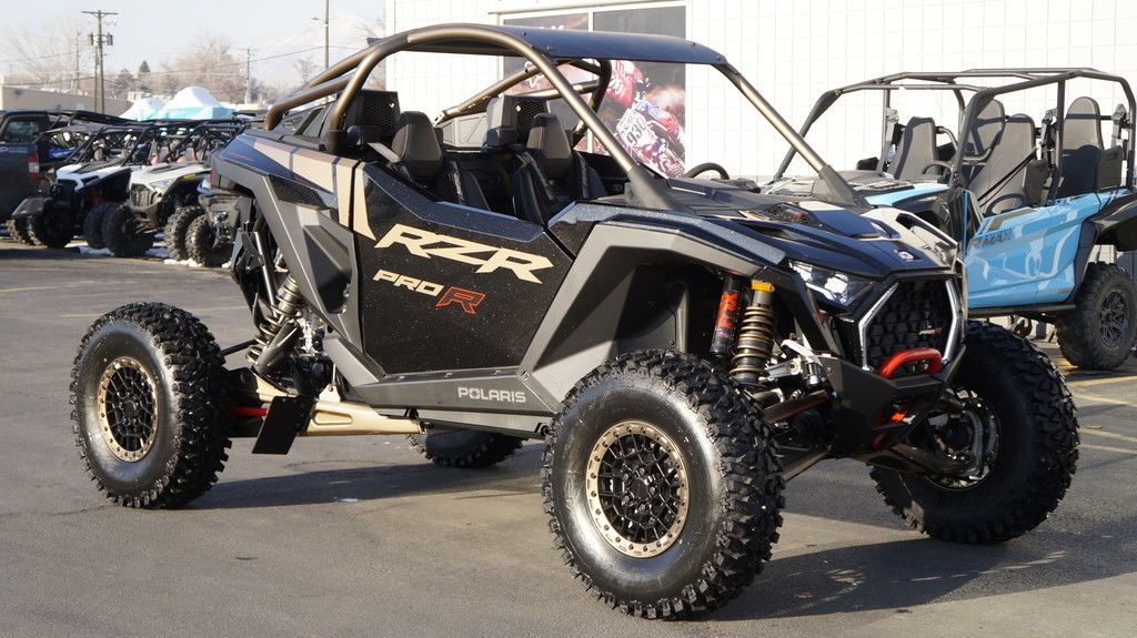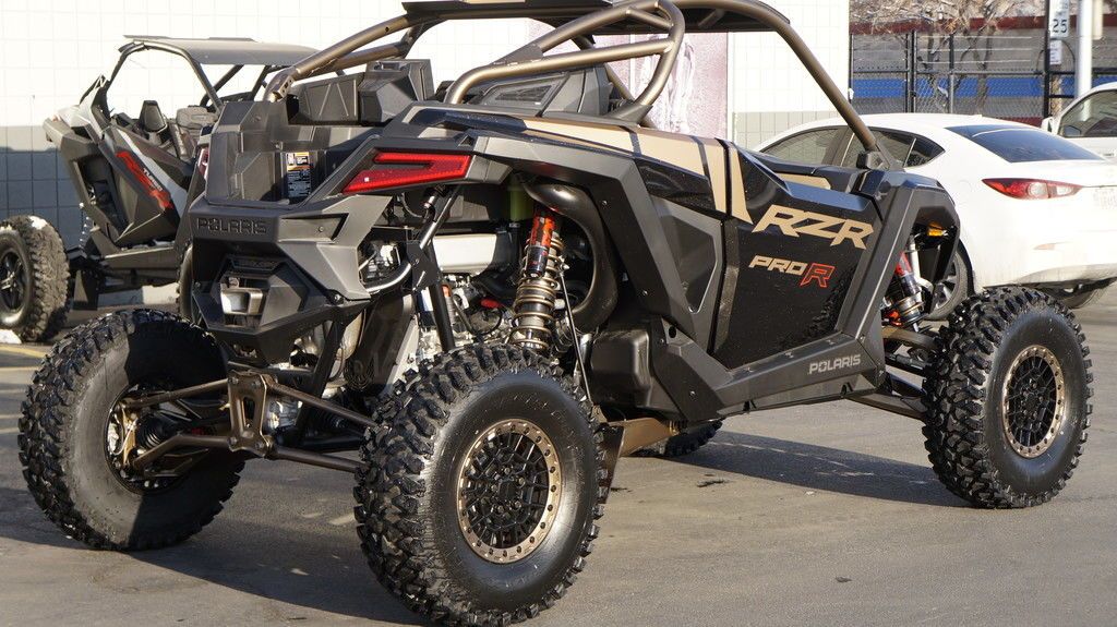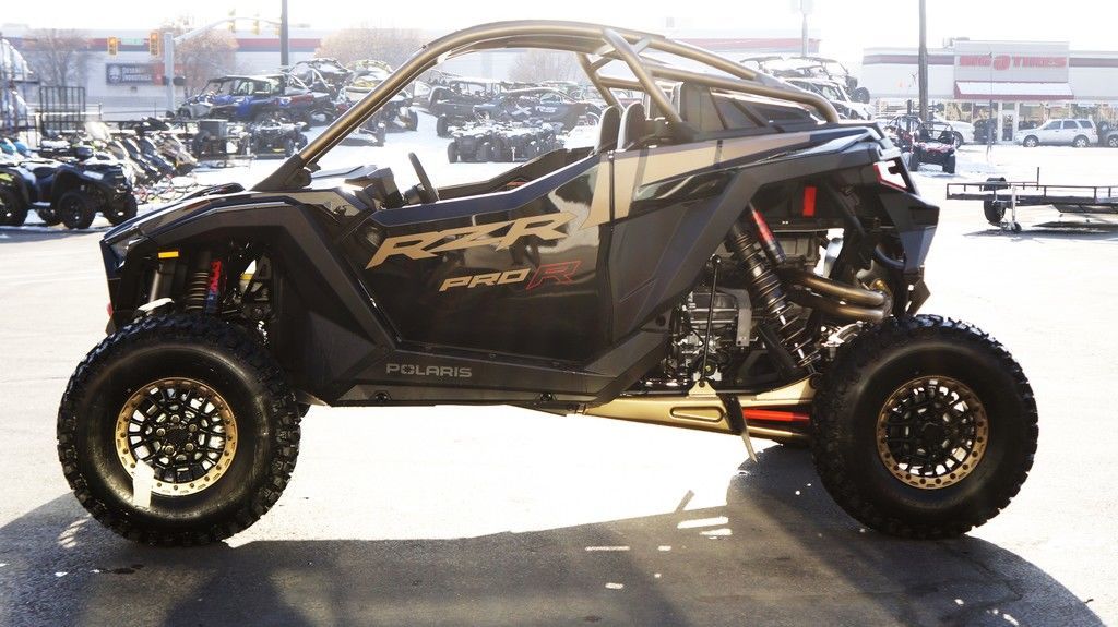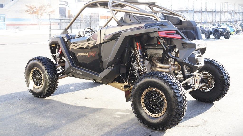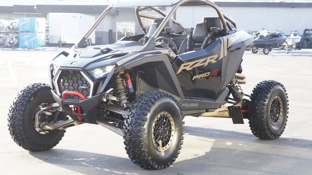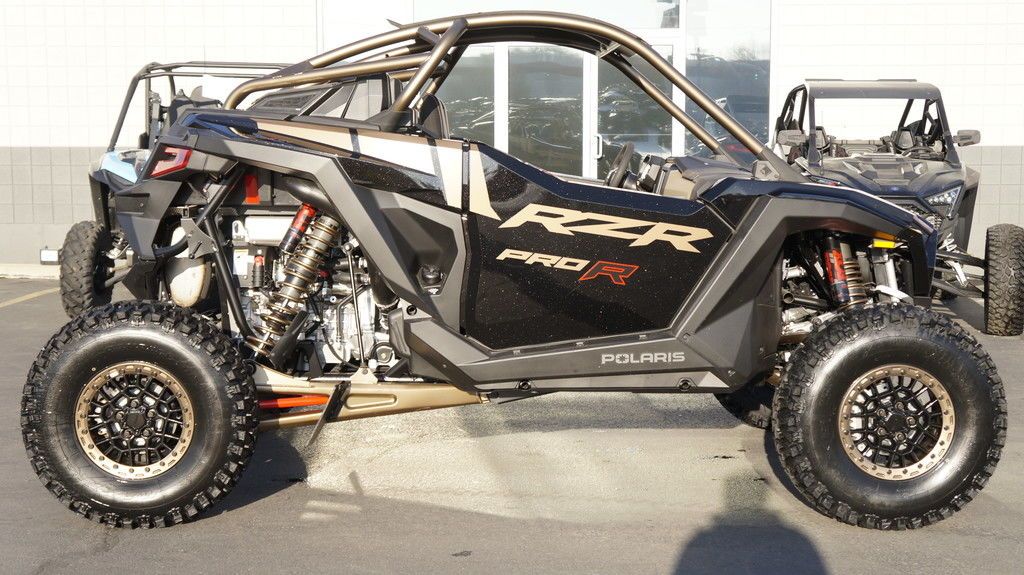 2025 Polaris® RZR Pro R Ultimate Champion of the Desert Unleash a force of nature with RZR Pro R, our most powerful RZR with race-proven durability. Features may include: A Bold New Design Show up and stand out with the bold new design of RZR Pro R–delivering more and style and performance to win it all. Refined Interior Winning starts from within, and RZR Pro R is no exception. Its interior is meticulously designed with more comfort and convenience, empowering you to ride farther, drive harder and finish in first place. PERFORMANCE Out-thrill them all with an off-road beast designed to dominate. RZR Pro R delivers heart-pounding performance with race-proven components to defy deserts and conquer dunes. Game-Changing Technology Take your ride up a notch with off-road optimized tech. From advanced connectivity to groundbreaking sound, the RZR Pro R features cutting-edge tech to unlock more potential off road. NEW! Fresh Cabin Air Intakes NEW! Guage Cluster with Dual Analog Dials and 4" LCD Screen NEW! 10 Spoke Aluminum 5-lug Wheels 74" Width, 104.5" Wheelbase ProStar Fury 2.0 225 HP Engine Pro Performance True 2WD/4WD/4WD Lock MaxLink Suspension with 29" Usable Travel 32" Maxxis® Tires and Aluminum 5-lug Wheels 6-Pt. Retractable Harness NEW! Animated RZR Fang Accent Lighting NEW! Rockford Fosgate® Stage 4 Audio NEW! Color Matched 5-Lug Beadlock Wheels NEW! Pro Climate Heat & Vent seats NEW! Front Painted Fascia NEW! Painted Center Hood DYNAMIX DV with FOX 3.0 Live Valve X2 Internal Bypass Shocks RIDE COMMAND Off-Road Mapping Integrated into a 7" Display Vehicle Telemetry Data with RIDE COMMAND+ Rear Camera Telescoping Steering Wheel & Button Controls Aluminum Roof
