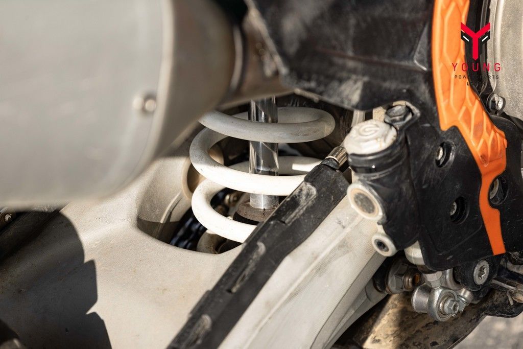The KTM 450 SX delivers metal twisting torque and requires a strong frame to cope with its immense power. For 2019, a new lightweight, high-tech steel frame was developed to further improve the power-weight-ratio, without compromising strength and durability. It features refined flex characteristics that ensure the bike soaks up those big hits while also maintaining excellent agility and high-speed stability. The chassis also features additional innovative elements, like "no dirt" foot pegs and new brackets for mounting an optional composite skid plate. Overall, every element of the chassis contributes to an intuitive, high-performance ride like no other.
