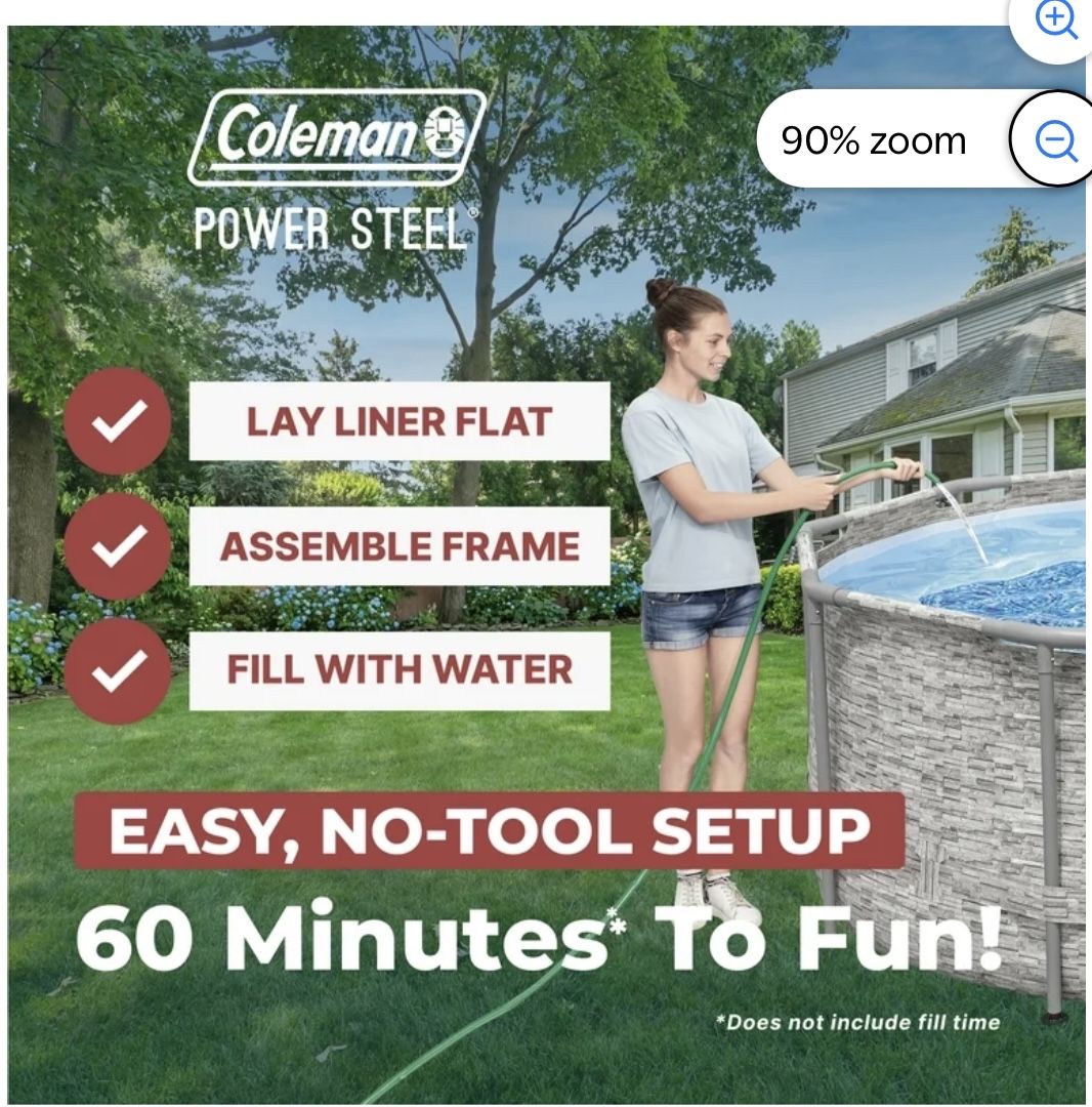 Have the summer of your (and your kids’) dreams with an above ground pool right in your own backyard! Durable Construction The Coleman® Power Steel™ Metal Frame Above Ground Pool is easy to set up and built to last. The durable steel frame is equipped with our Seal & Lock System™ for a sturdy and secure pipe connection. The frame connectors also prevent metal-on-metal contact to ensure corrosion and rust resistance See Less