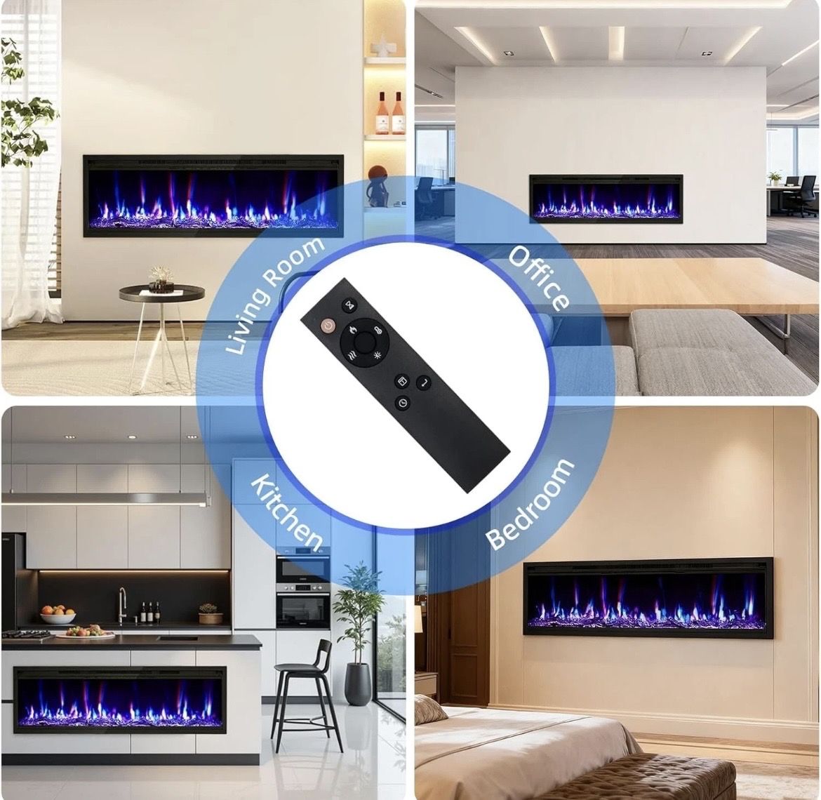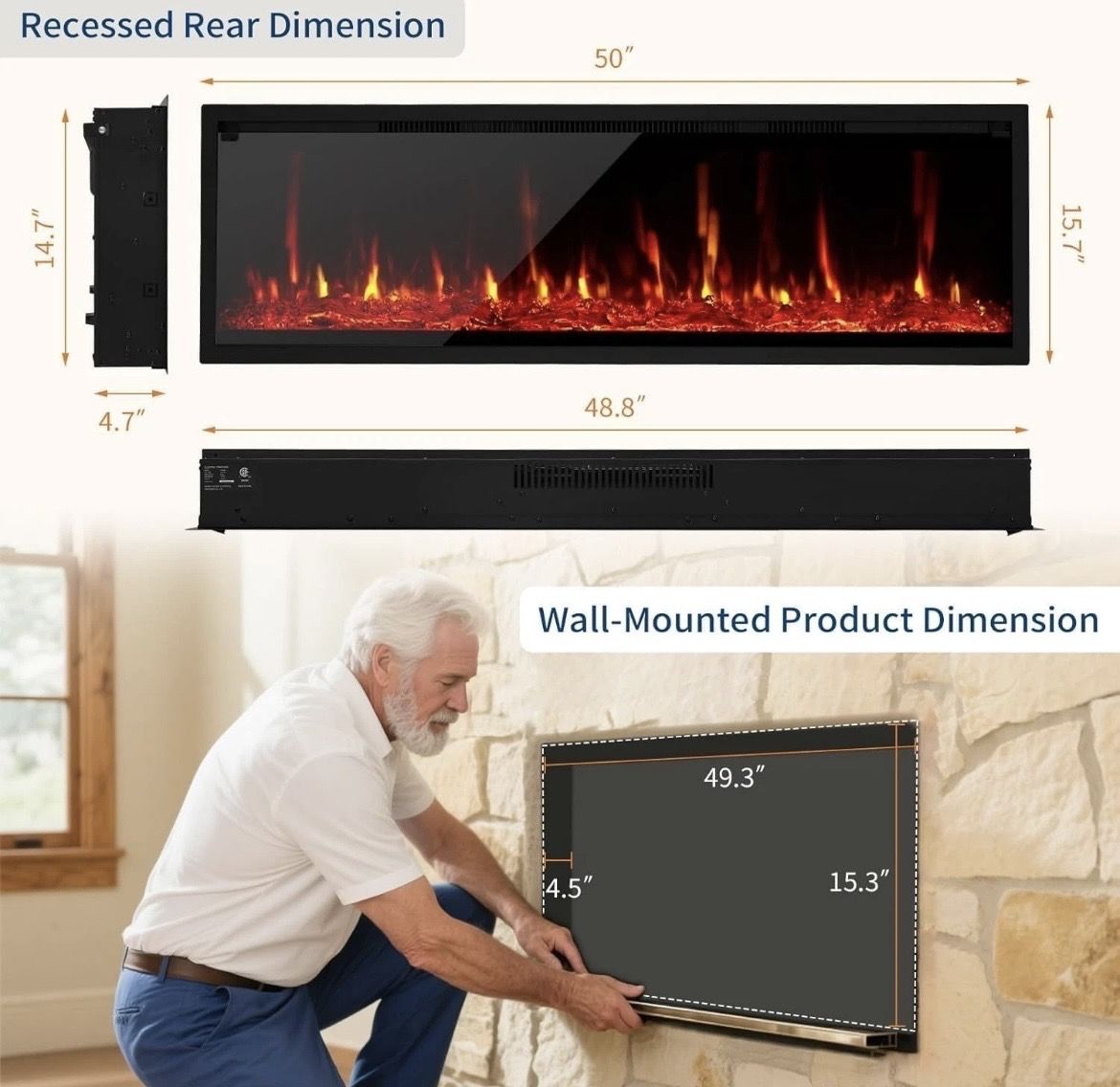 -Slim, Flexible Wall Mounted Fireplace Design: Featuring an ultra-thin profile, this wall mounted fireplace can be seamlessly recessed into the wall or surface-mounted for a modern, space-saving look. Perfect as a wall mounted electric fireplace for living rooms, offices, or commercial spaces seeking both style and efficient heat.