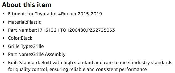 VenmoNew - AnnLeeke Upper Grill for Toyota 4Runner 2015-2019 Plastic, Black. Still in the Box!