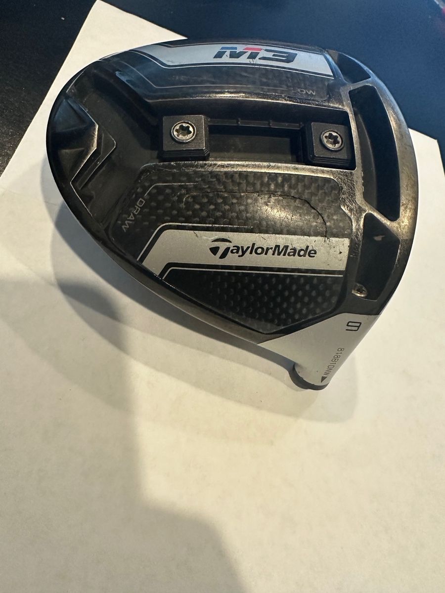 M3 9Degree Driver Head. Used but still has great pop in the head. See Picture #5, has small crack on the bottom side, in the carbon fiber, does not affect the performance.