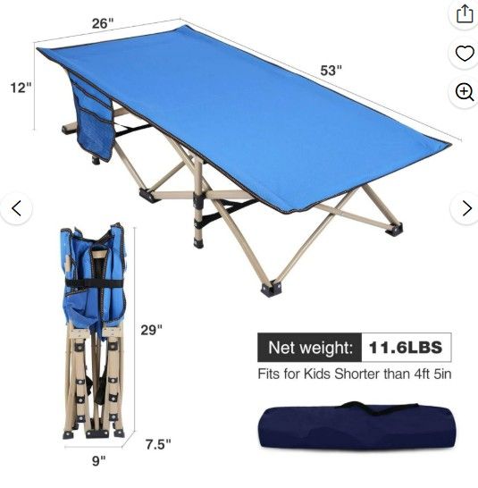 VenmoNew - RedCamp Kids Travel Camping & Portable Folding Cot, Extra Long Kids Cot for Sleeping 2-7 years, Blue 53" x 26" Toddler Bed for Outdoor/Indoor, Home. Still in the Box!